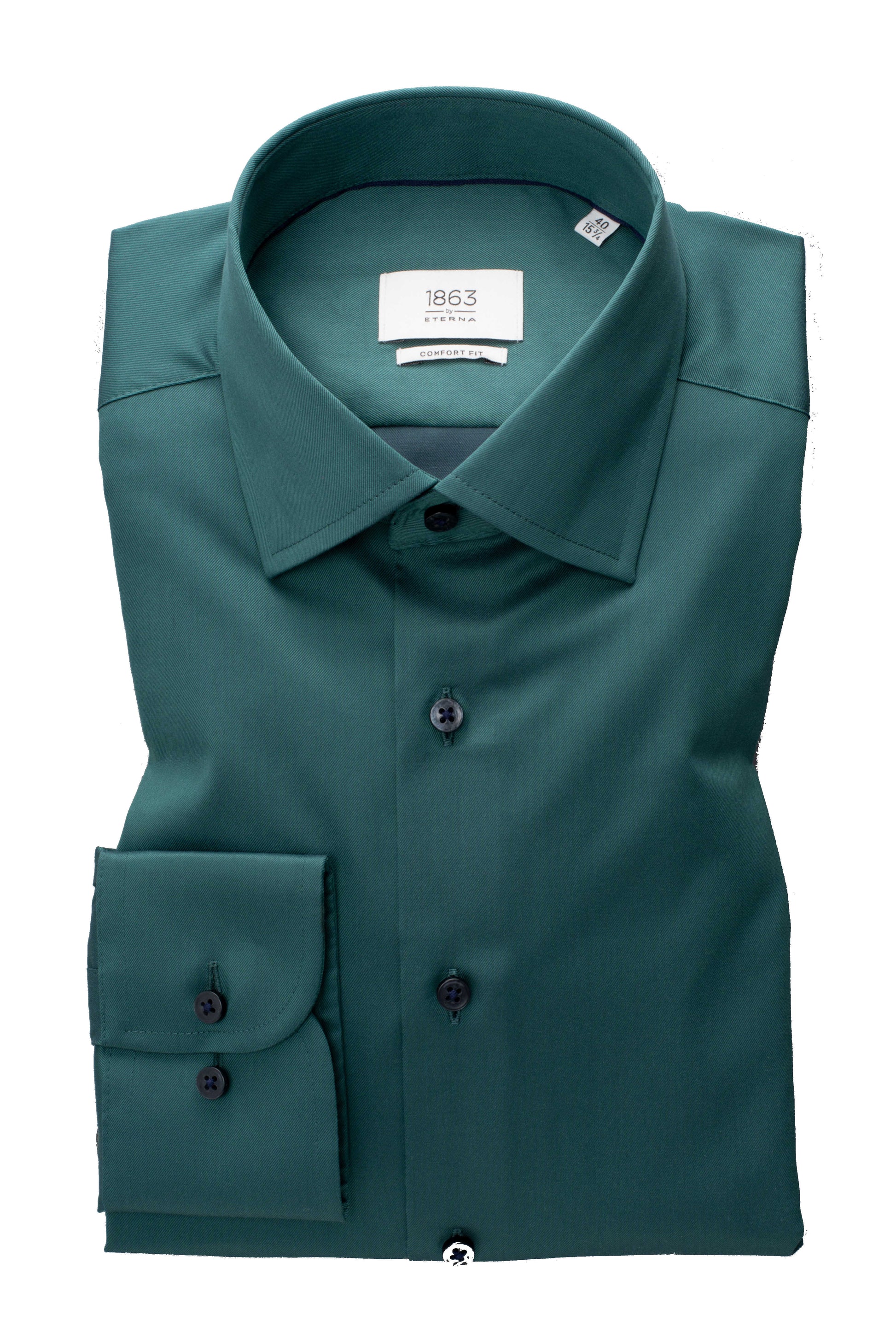 Eterna by1863 luksusskjorte – Comfort Fit petrolgrøn i 100% bomuld