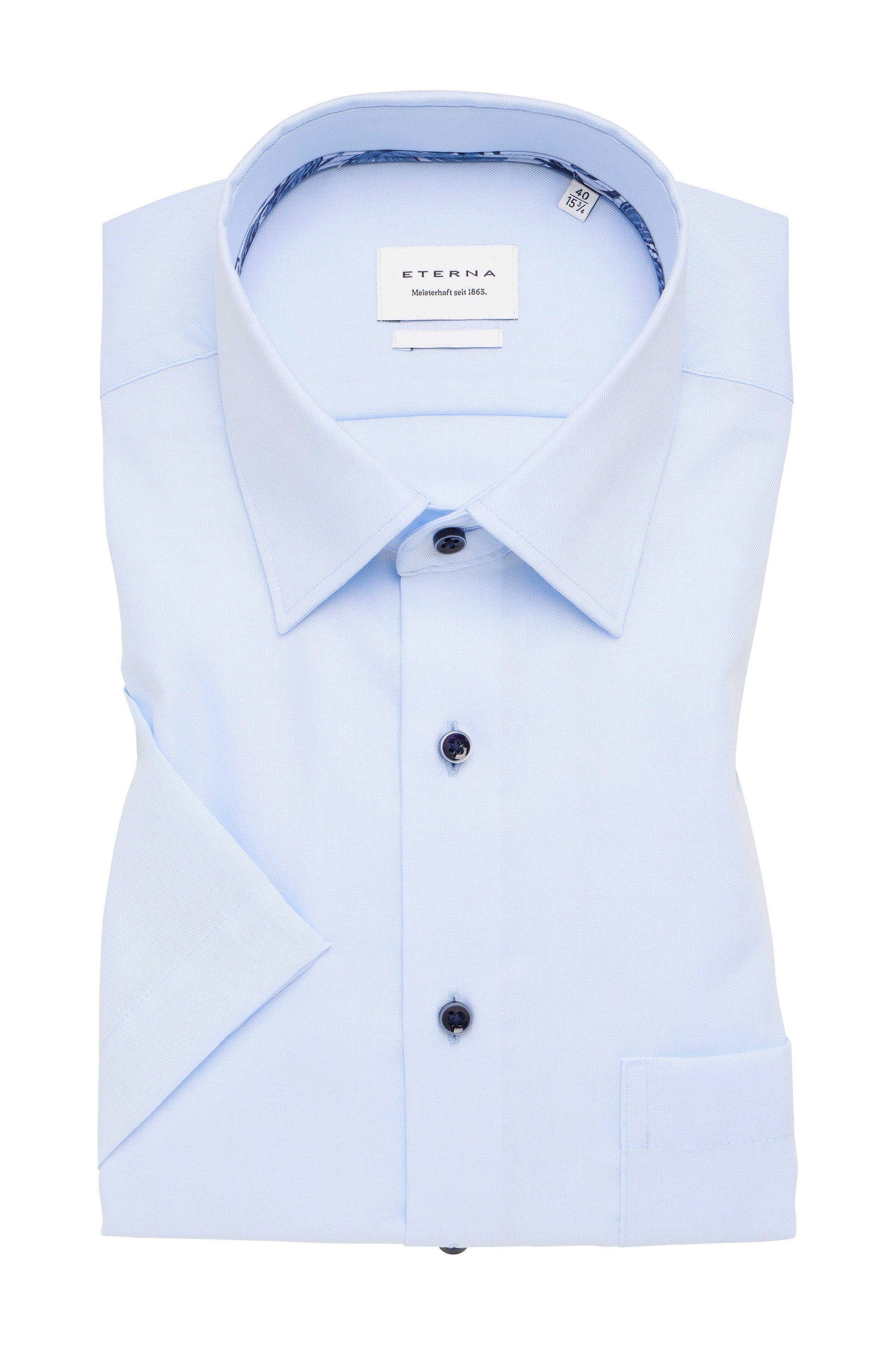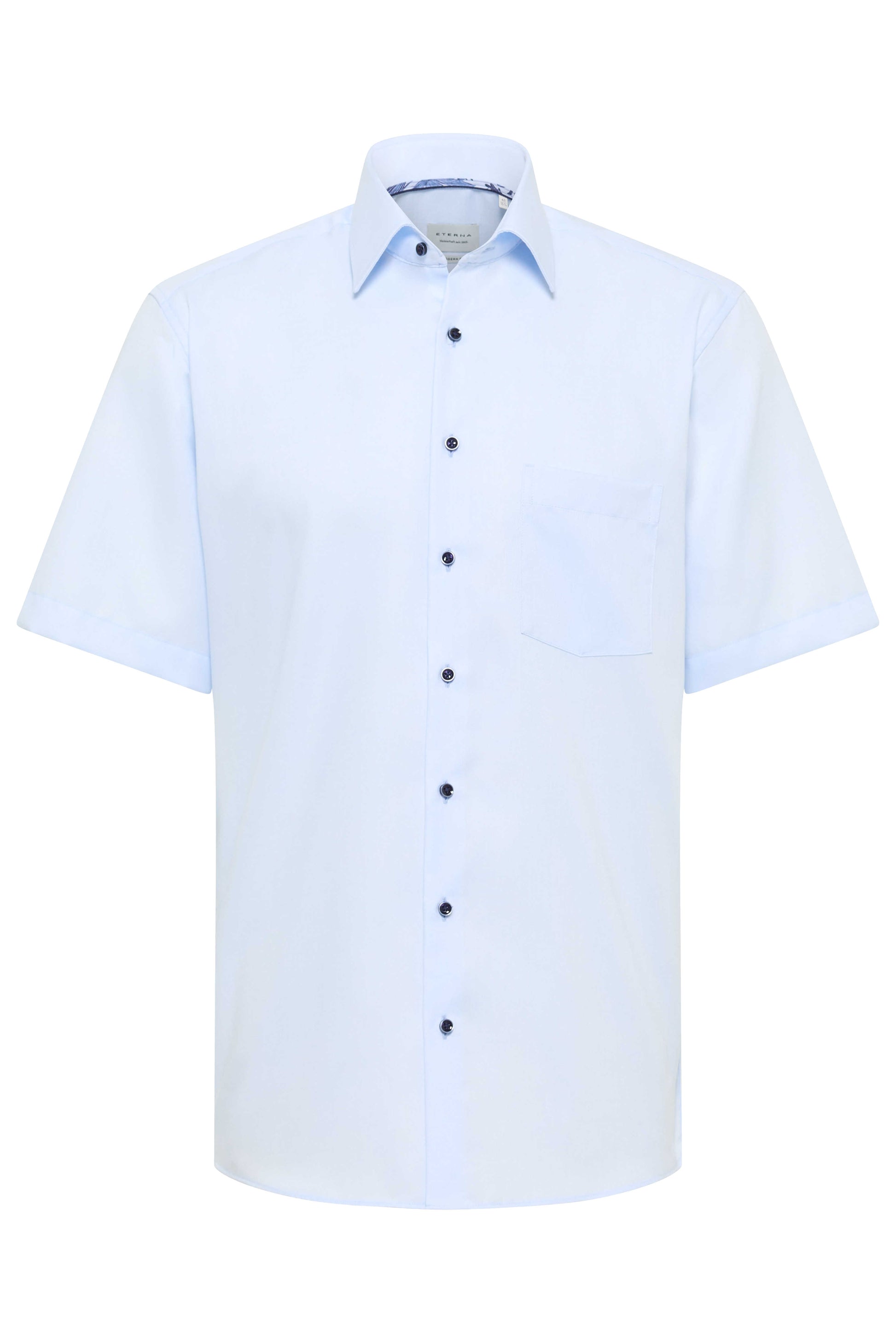Klassisk kortærmet Eterna skjorte til din garderobe. Eterna Comfort Fit skjorte med korte ærmer. Denne strygefri twill skjorte er fremstillet af 100% bomuld, hvilket sikrer optimal komfort hele dagen. Afrundet og normal længde, kan bæres afslappet over bukserne. Skjorten findes blå og lyseblå.