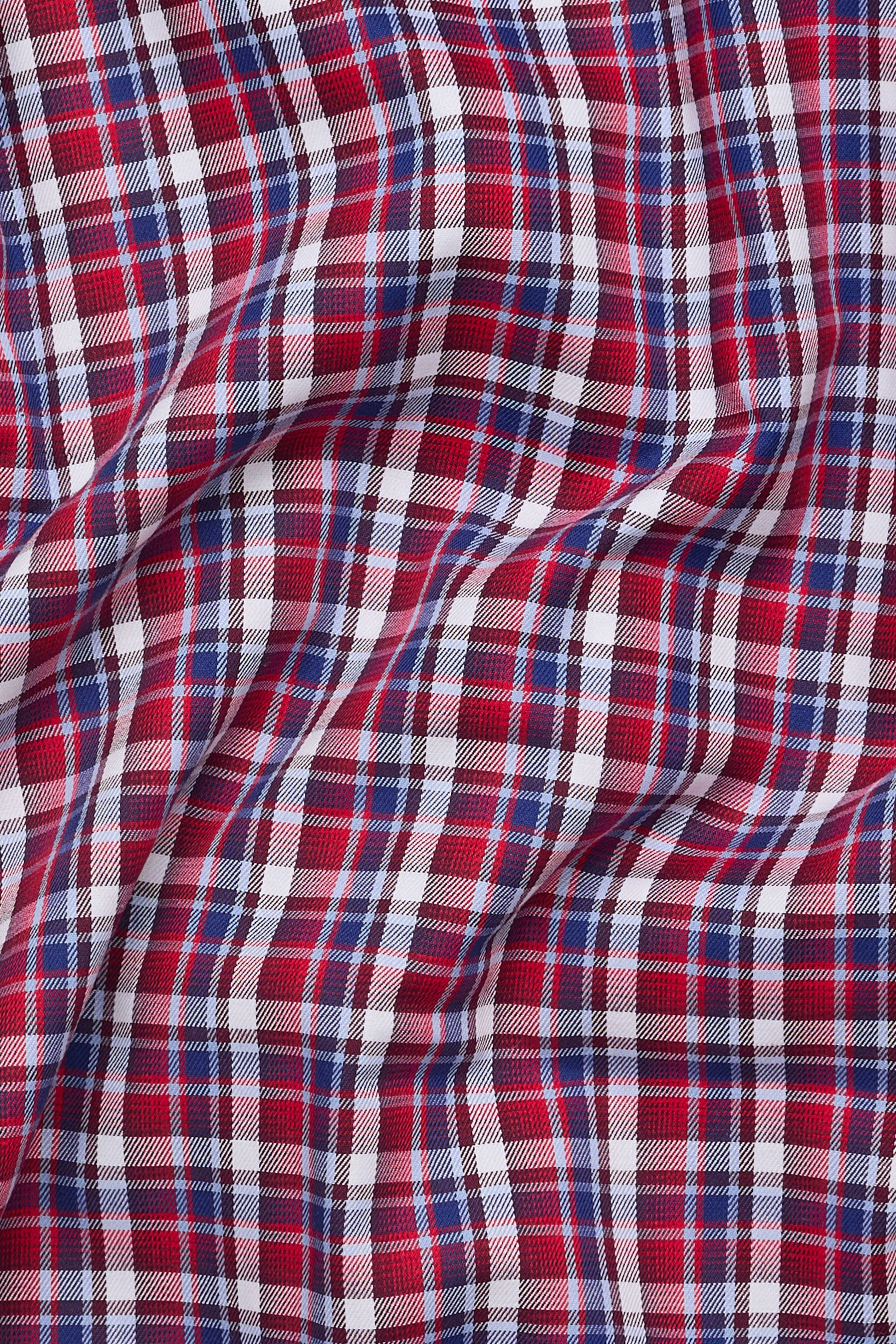 Denne klassiske Eterna skjorte i rød og blå el grøn, sand og blå tern kombinerer tidløst design med høj komfort. Skjorten har button-down krave, brystlomme og matchende knapper syet med tråd i samme farve som ternene, hvilket giver et harmonisk og stilfuldt udtryk.