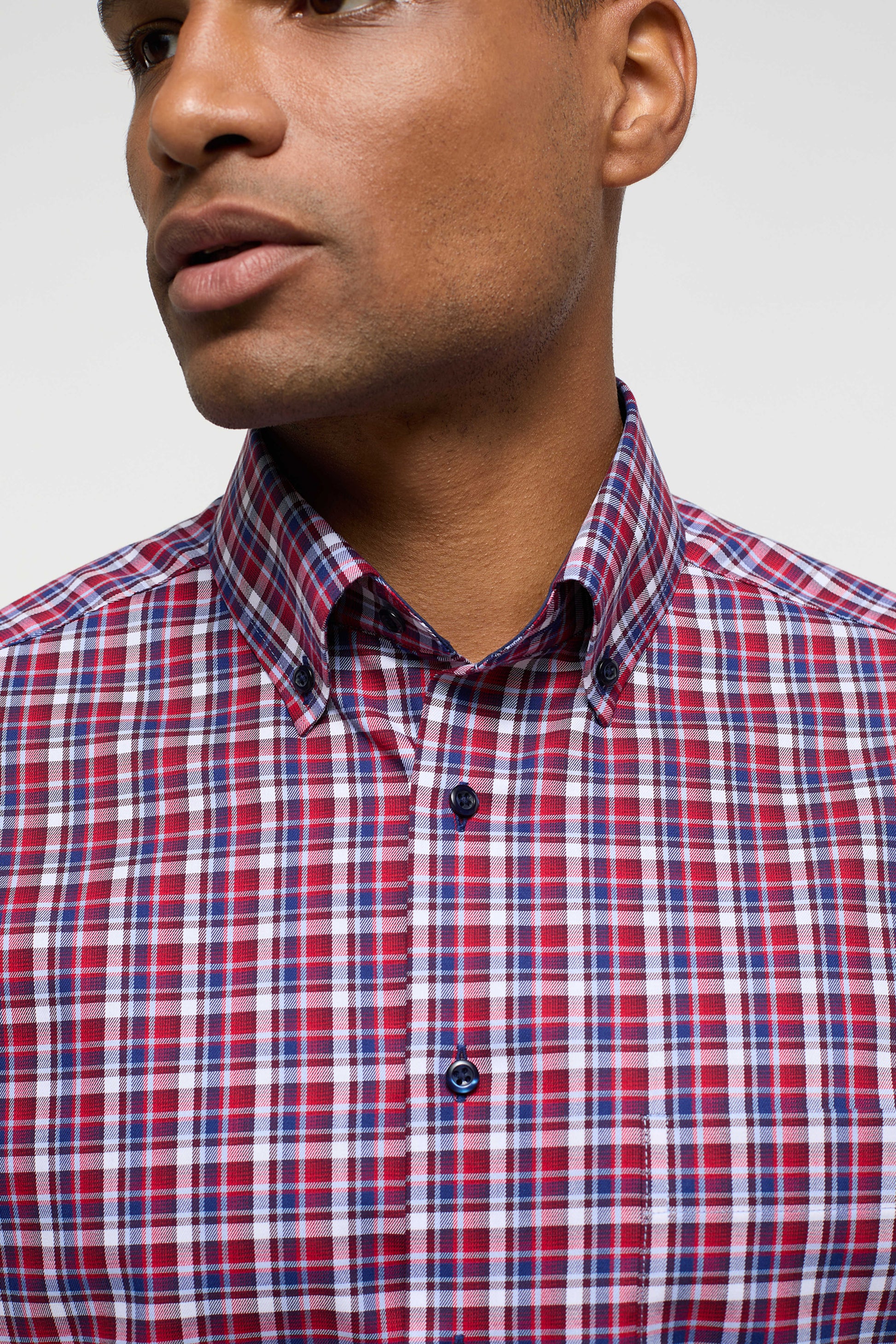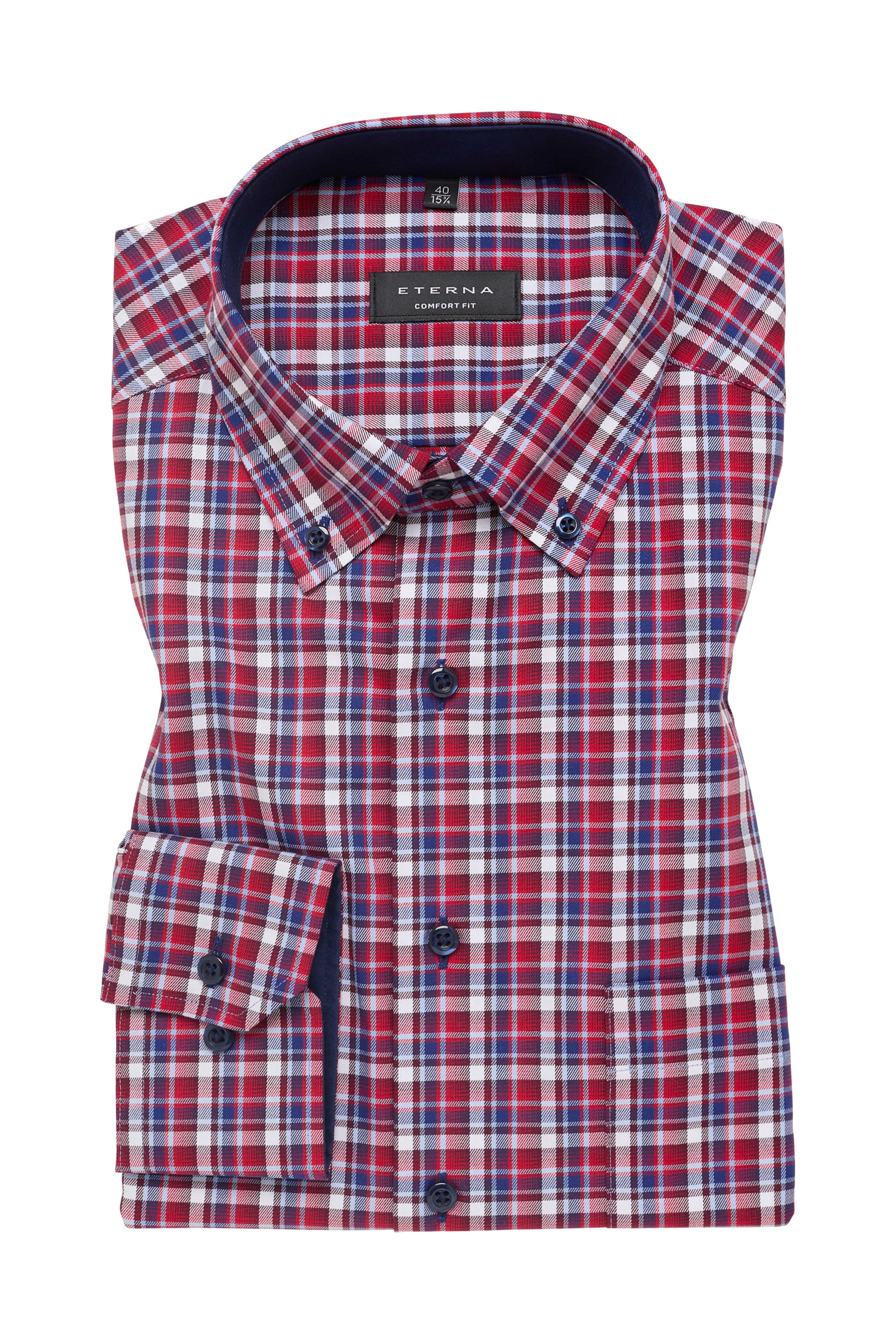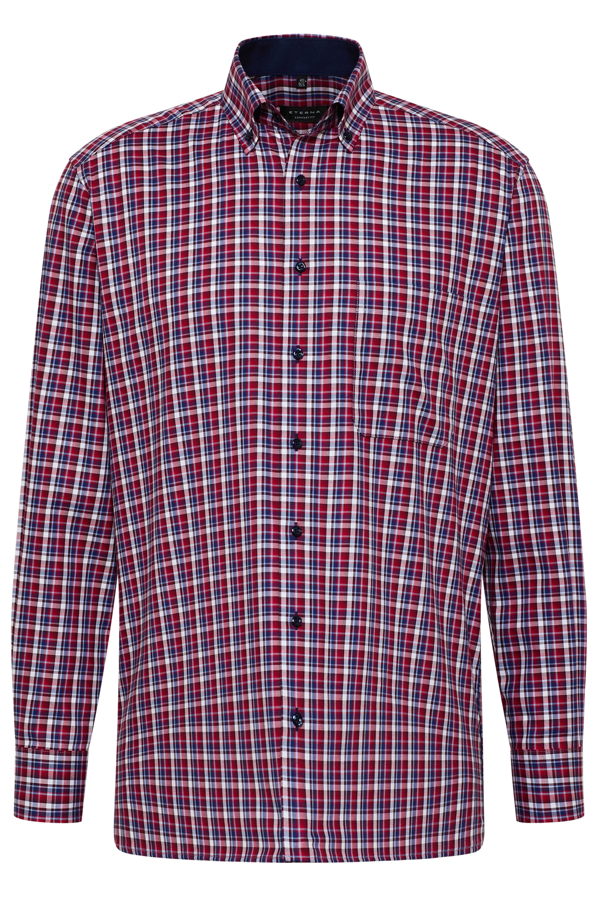 Eterna Comfort Fit skjorte – tern i to farver med button-down krave og brystlomme