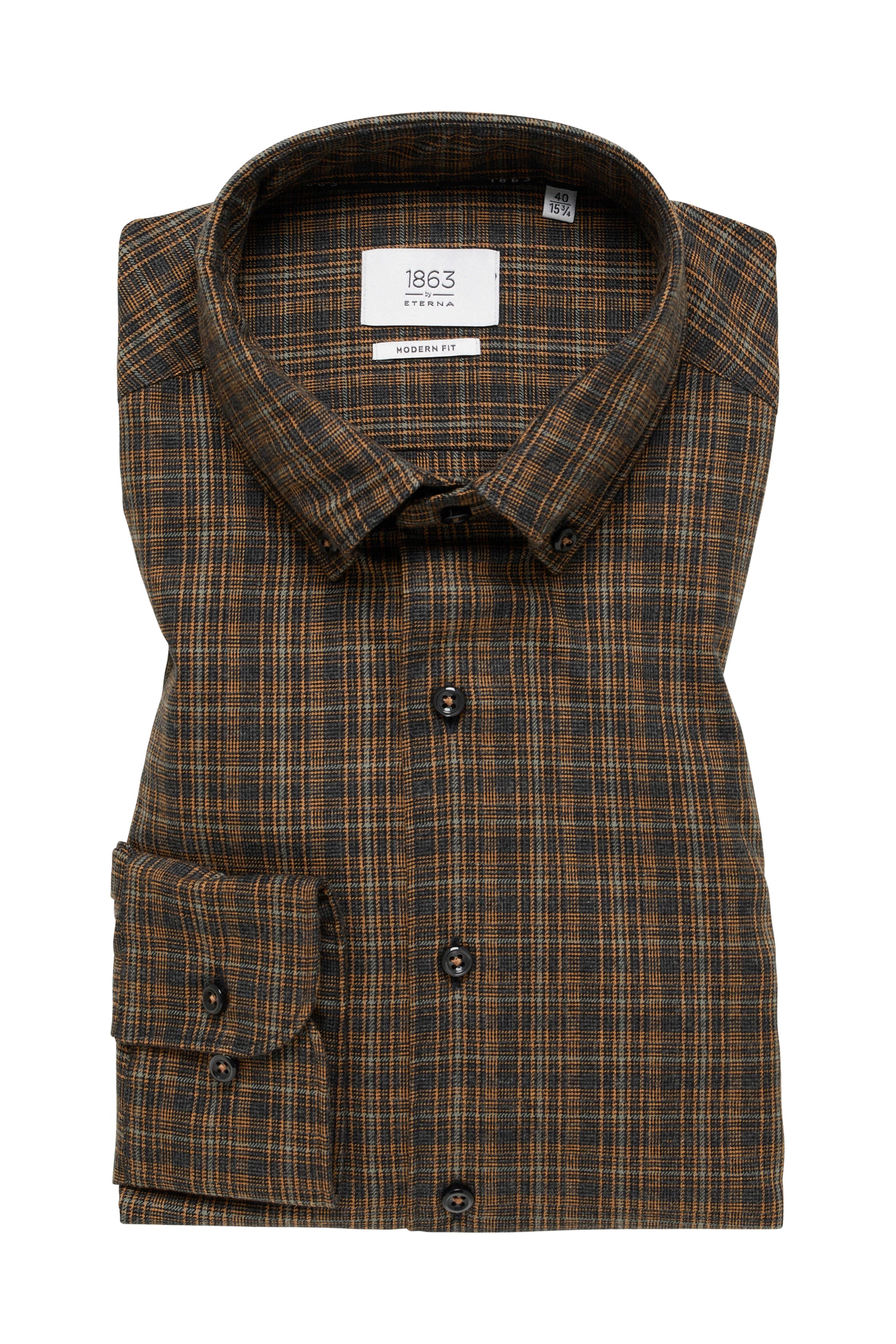 Eterna by 1863 – Luksus premium flannelskjorte i brun og grå tern