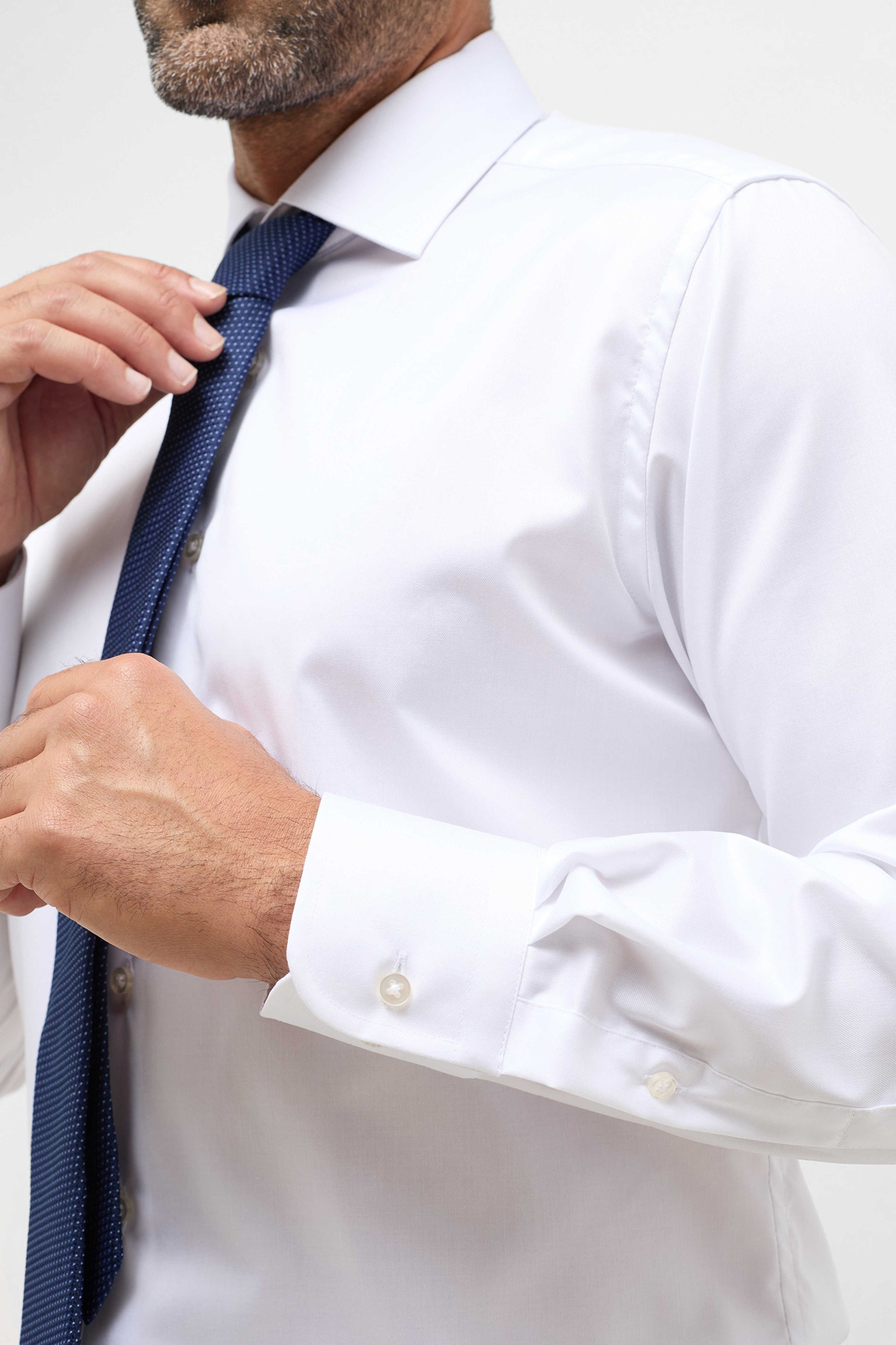 Eterna 1863 by Eterna – hvid el. mørkeblå Modern Fit luksusskjorte med strækeffekt og ekstra ærmelængde.