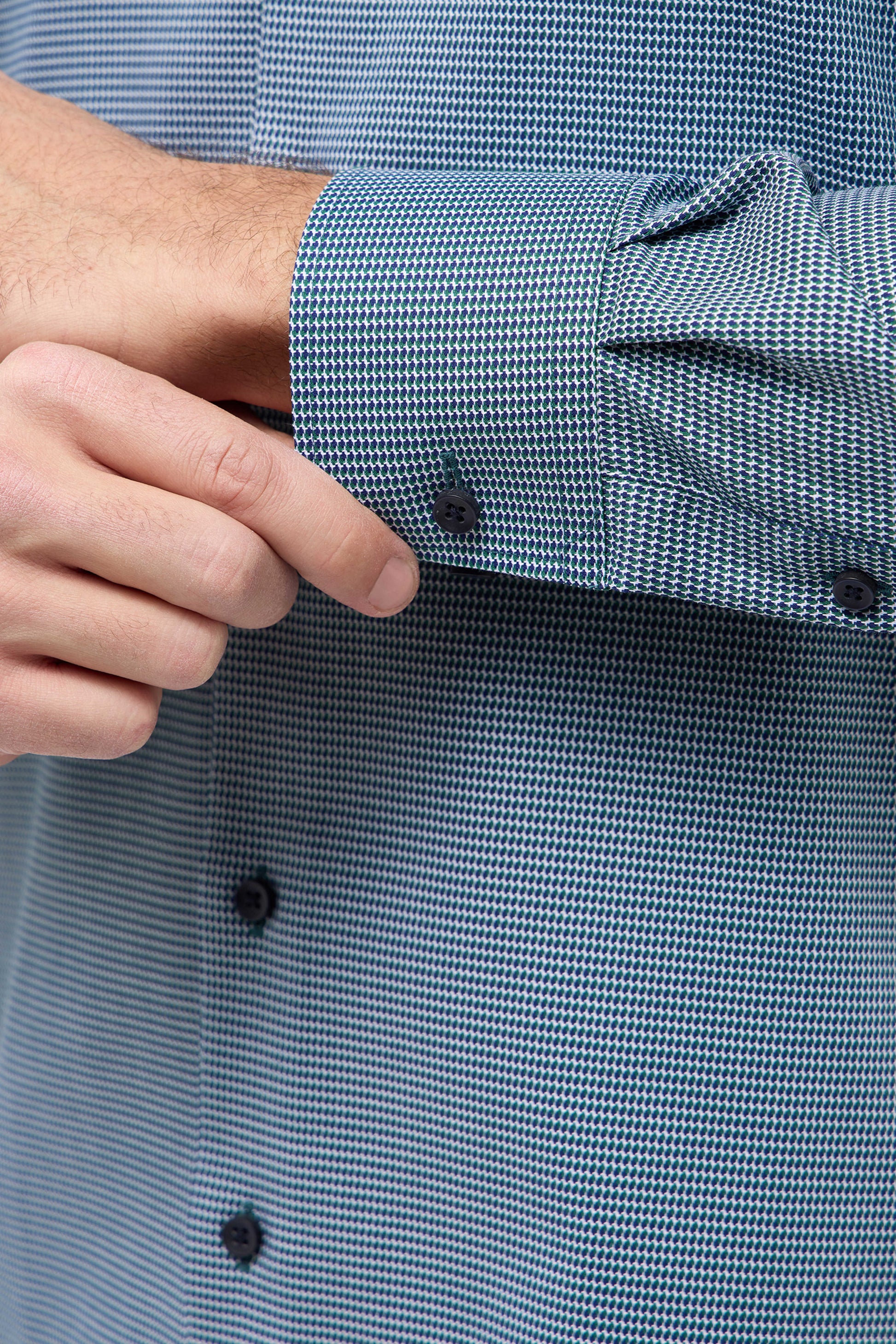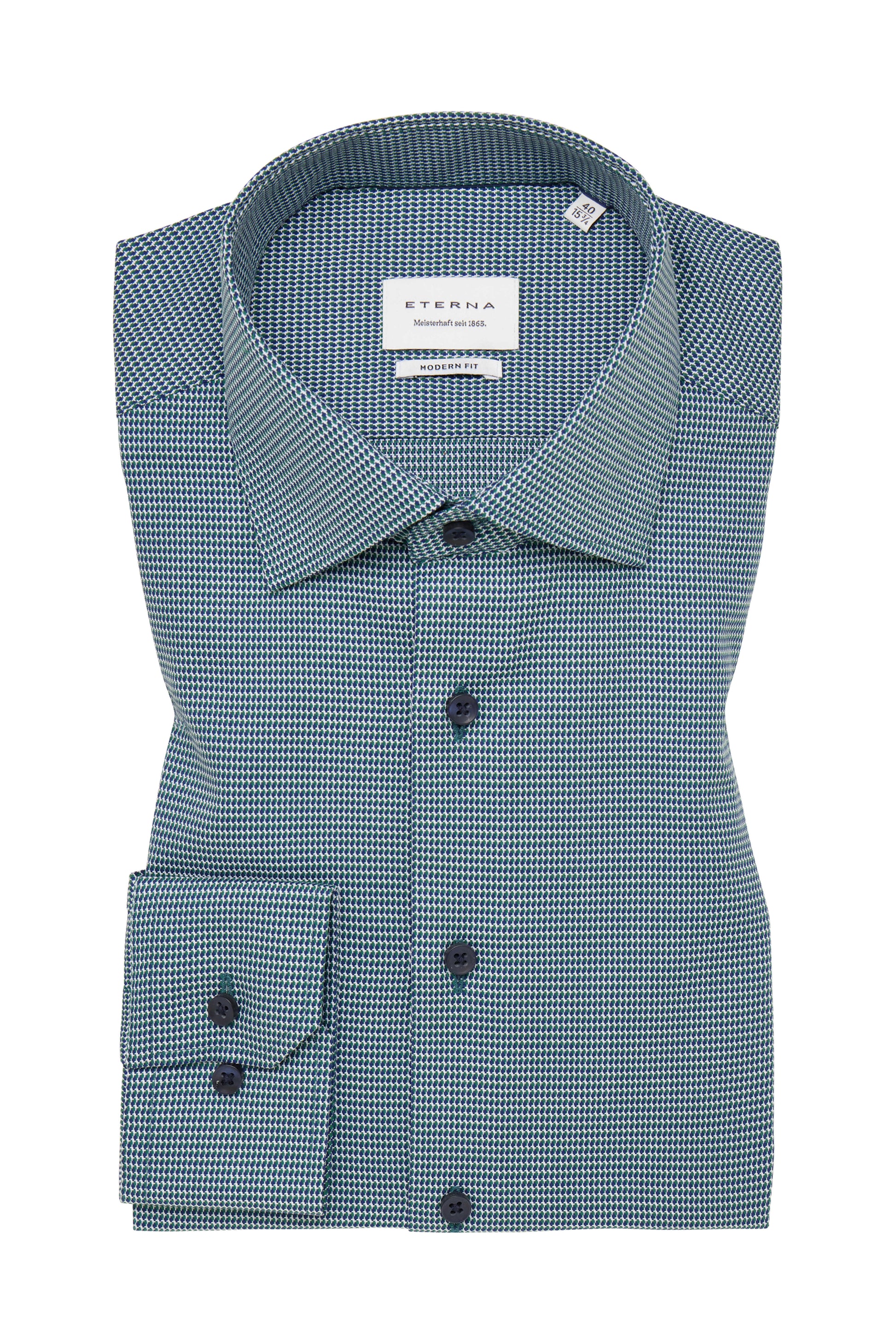 Eterna Modern Fit blågrøn strukturvævet skjorte – elegant herreskjorte uden brystlomme