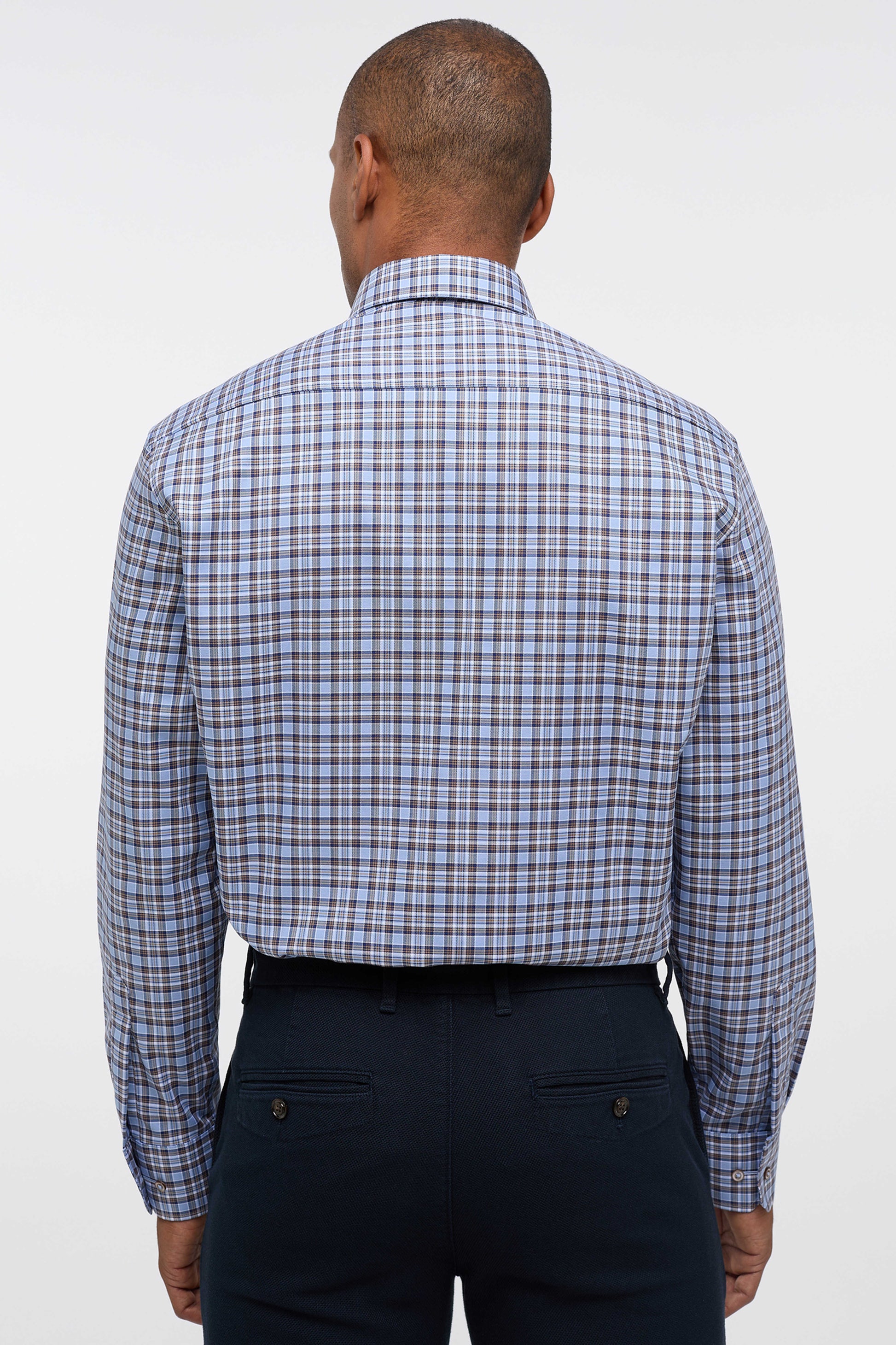 Eterna Modern Fit Skjorte – Blå og sandfarvet ternet med brystlomme