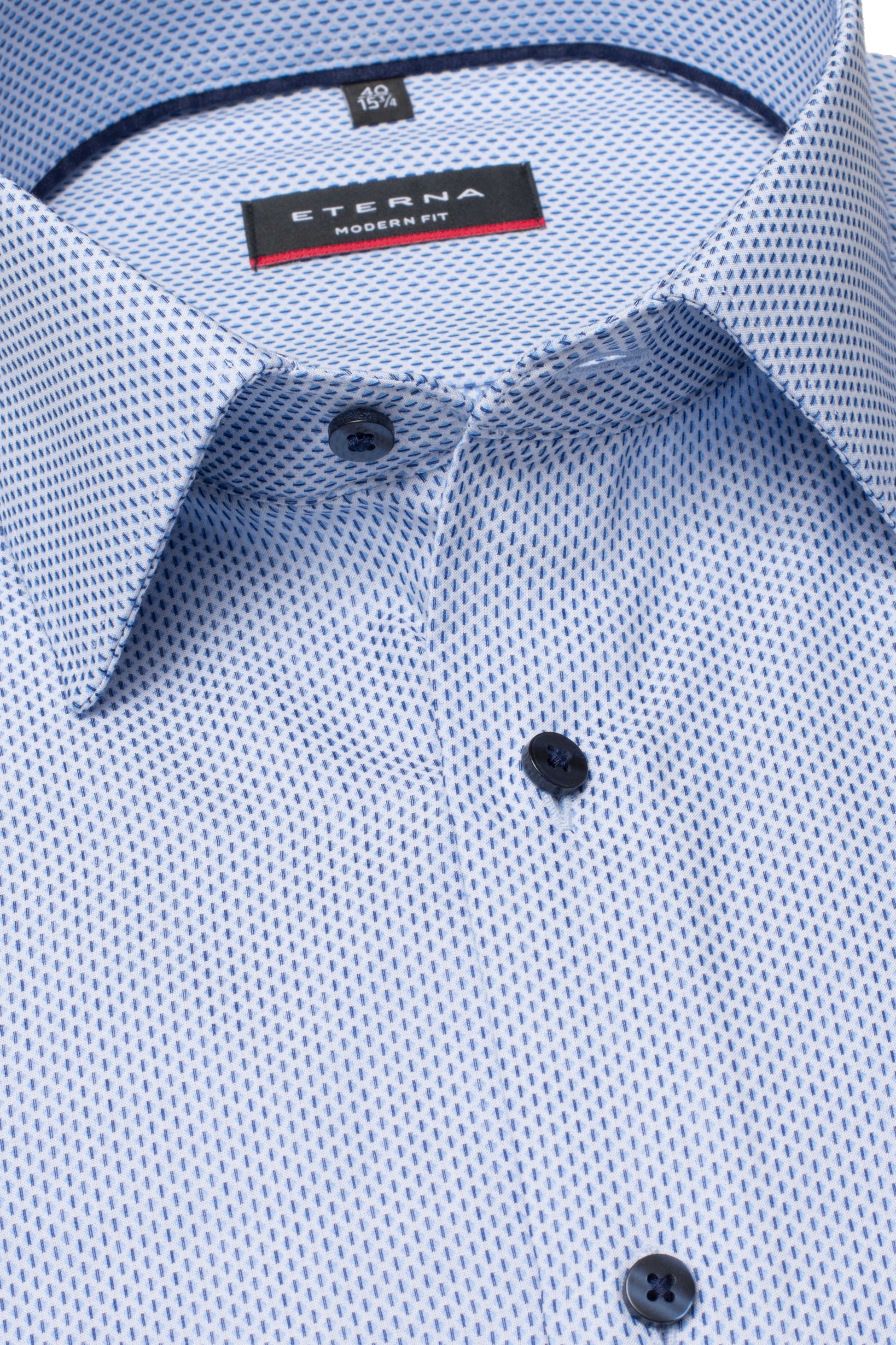 Eterna Modern Fit Skjorte – Blå struktur med brystlomme og cut-away krave