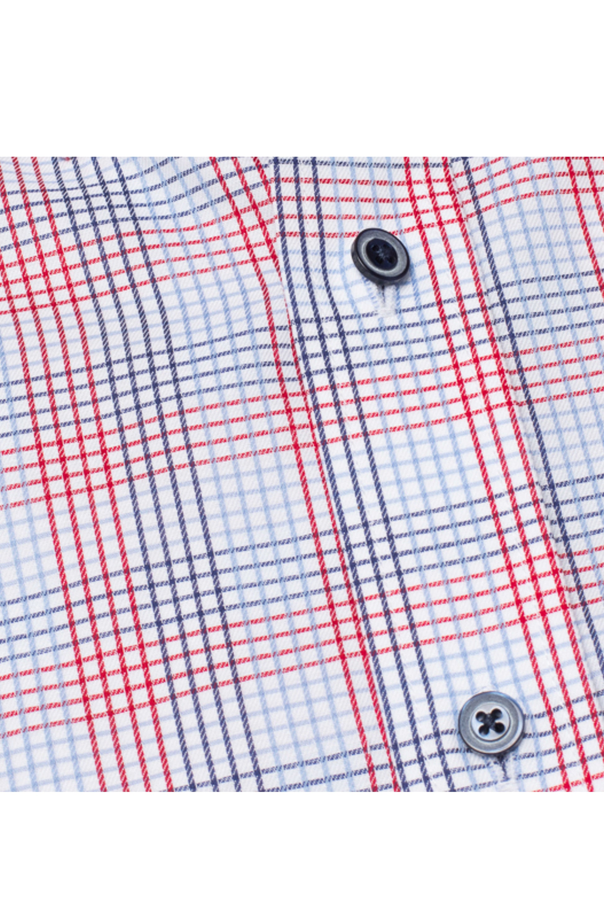 Flot Eterna skjorte i blå/rød stribet tern. Med blå knapper, alm. Kent krave og brystlomme. Modern Fit kan bruges af de fleste mænd - blot maven ikke er stor.