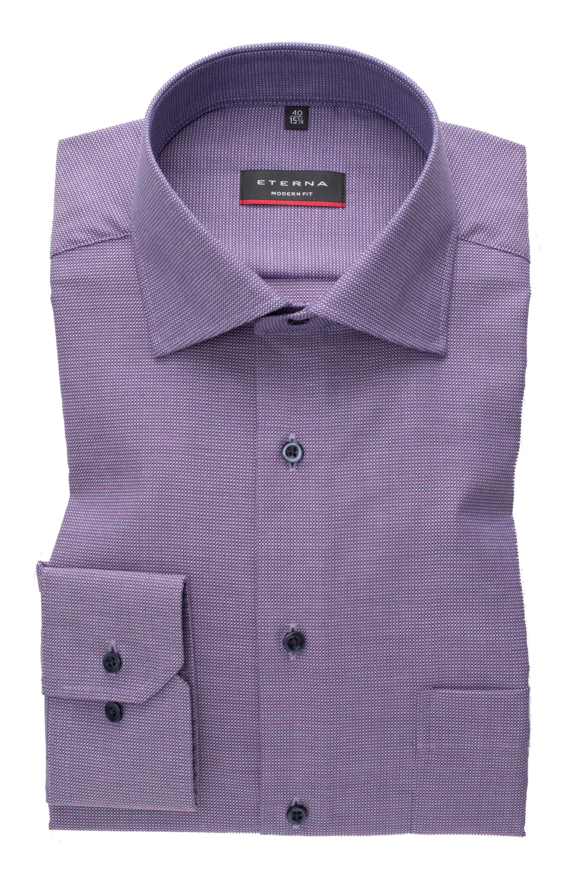 Denne Eterna Modern Fit skjorte i lilla el. jadegrøn Natté-vævning er et oplagt valg til dig, der ønsker en struktureret skjorte i luksuskvalitet, som kombinerer klassisk elegance med moderne pasform.