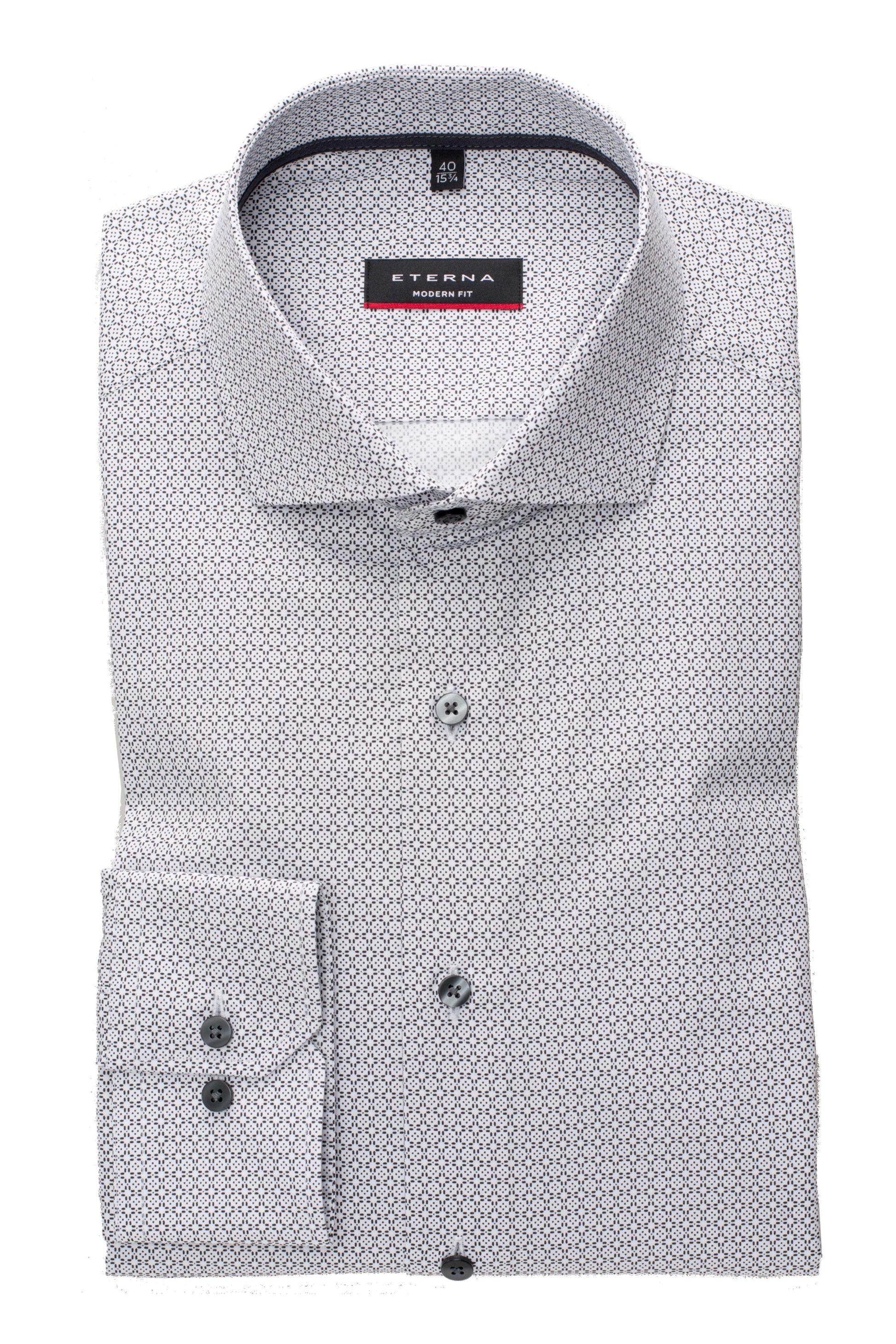 Elegant poplin skjorte fra Eterna i flot grå og hvidt mønster. Skjorten har cut-away krave, mørke knapper og er uden brystlomme for et rent og stilfuldt udtryk.