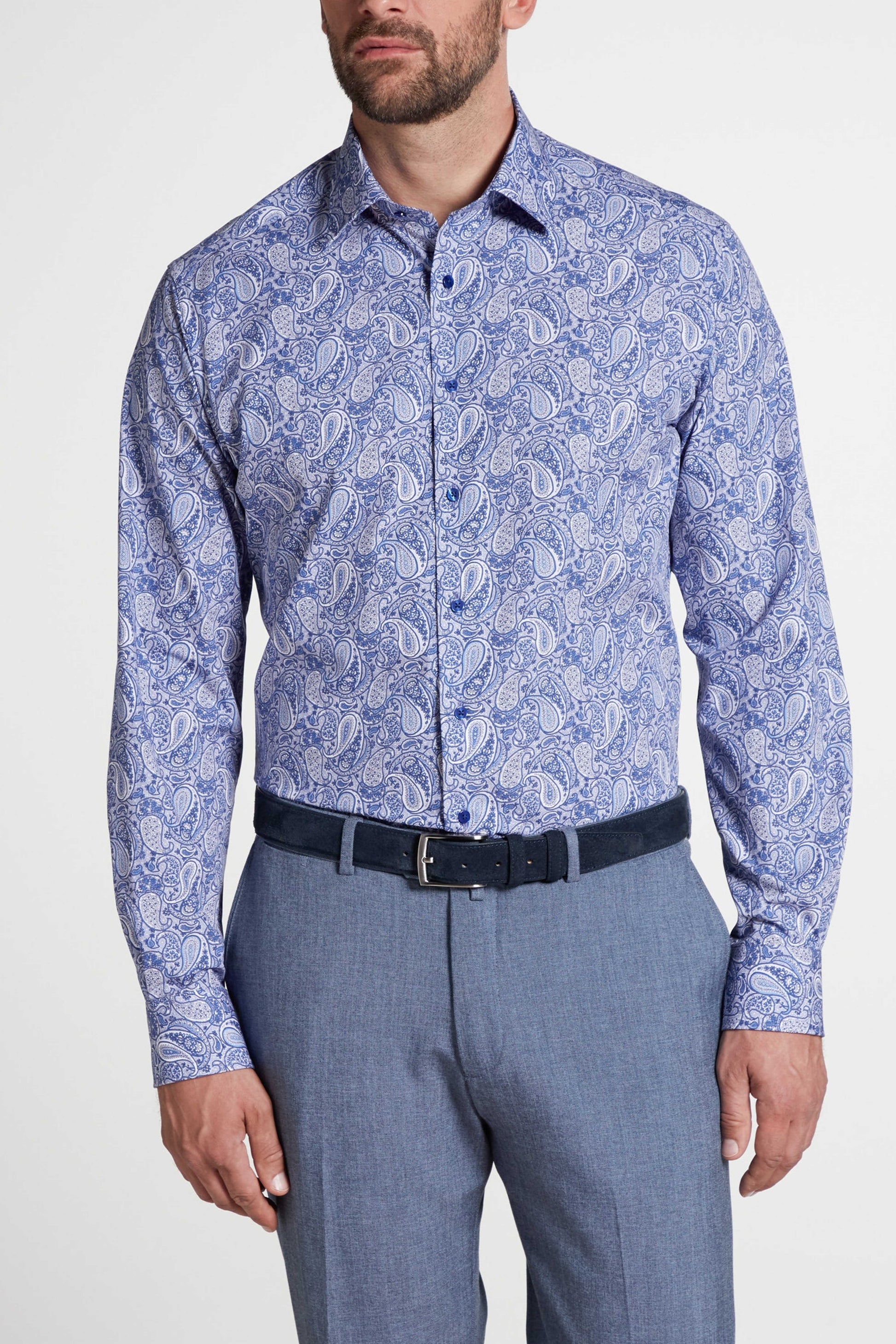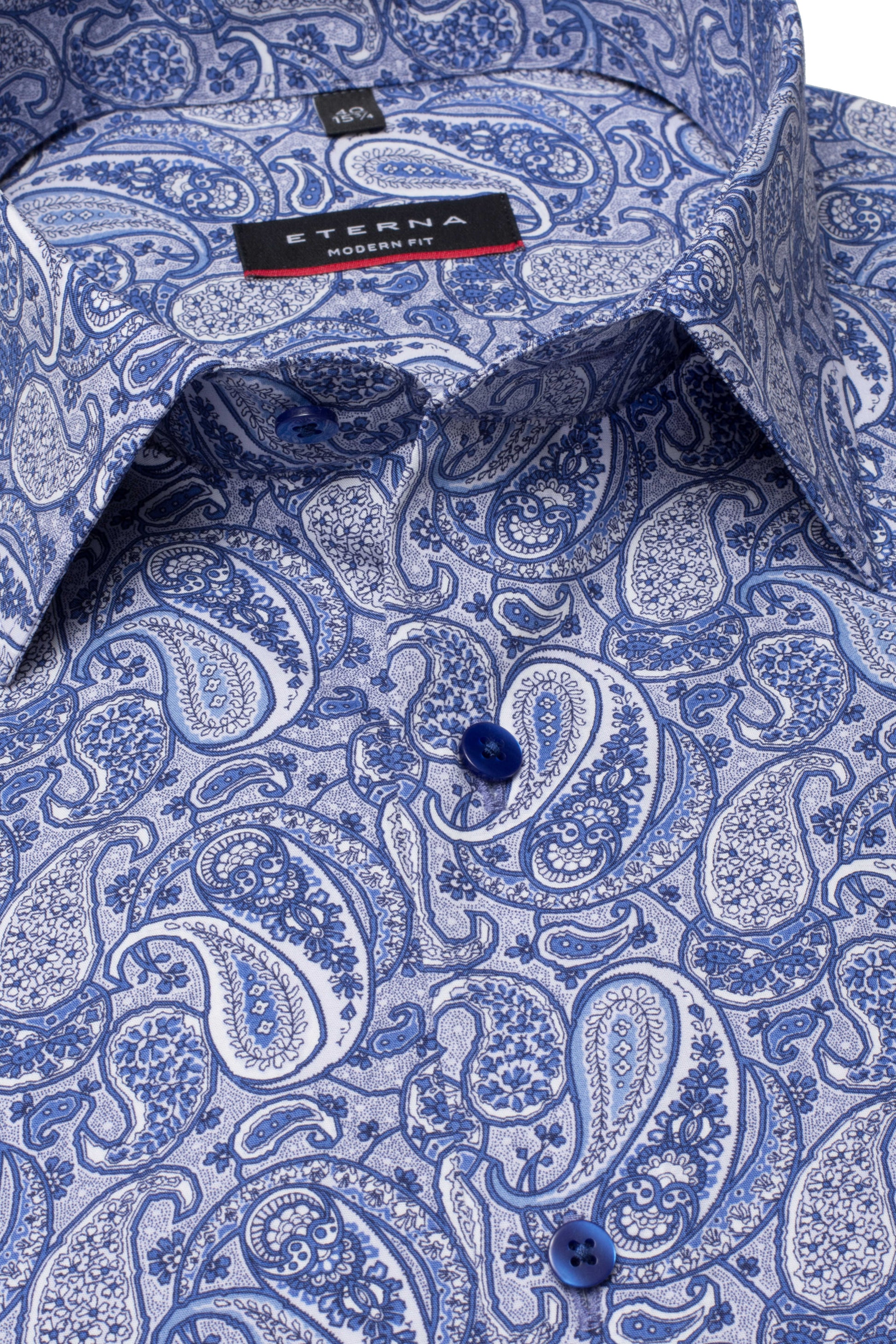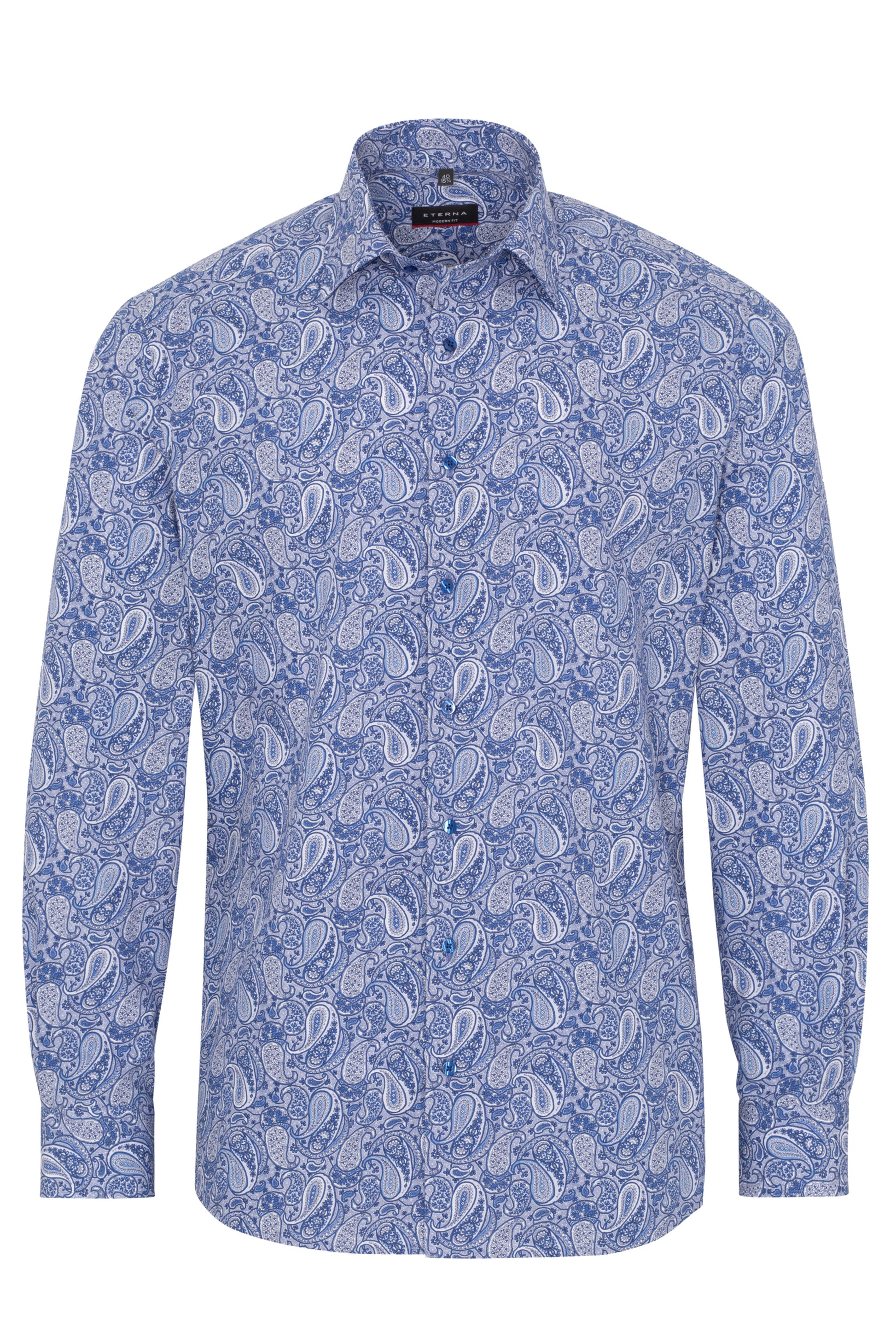 Eterna Modern Fit Poplin Paisley Skjorte – Lyseblå med Blå og Hvide Detaljer