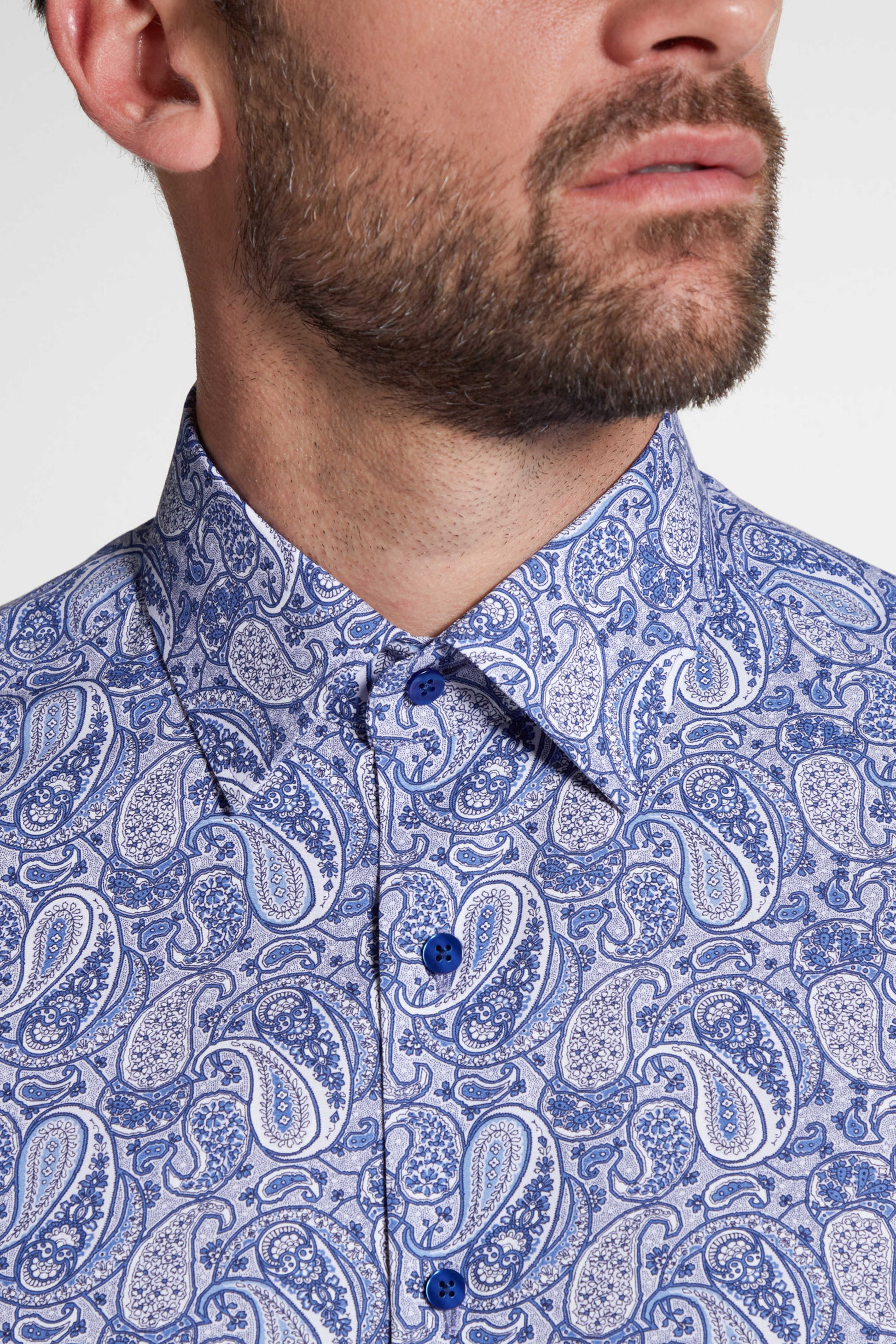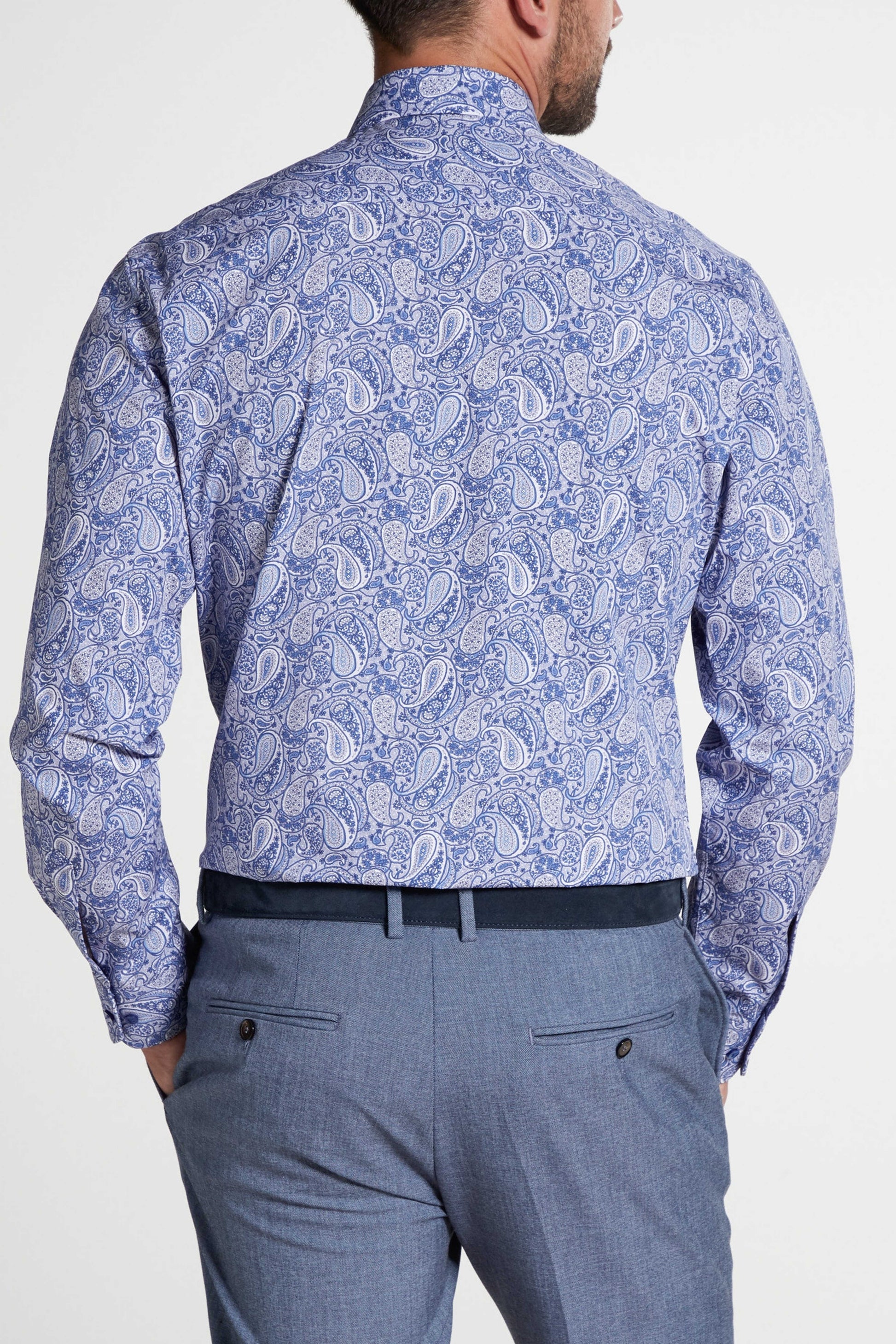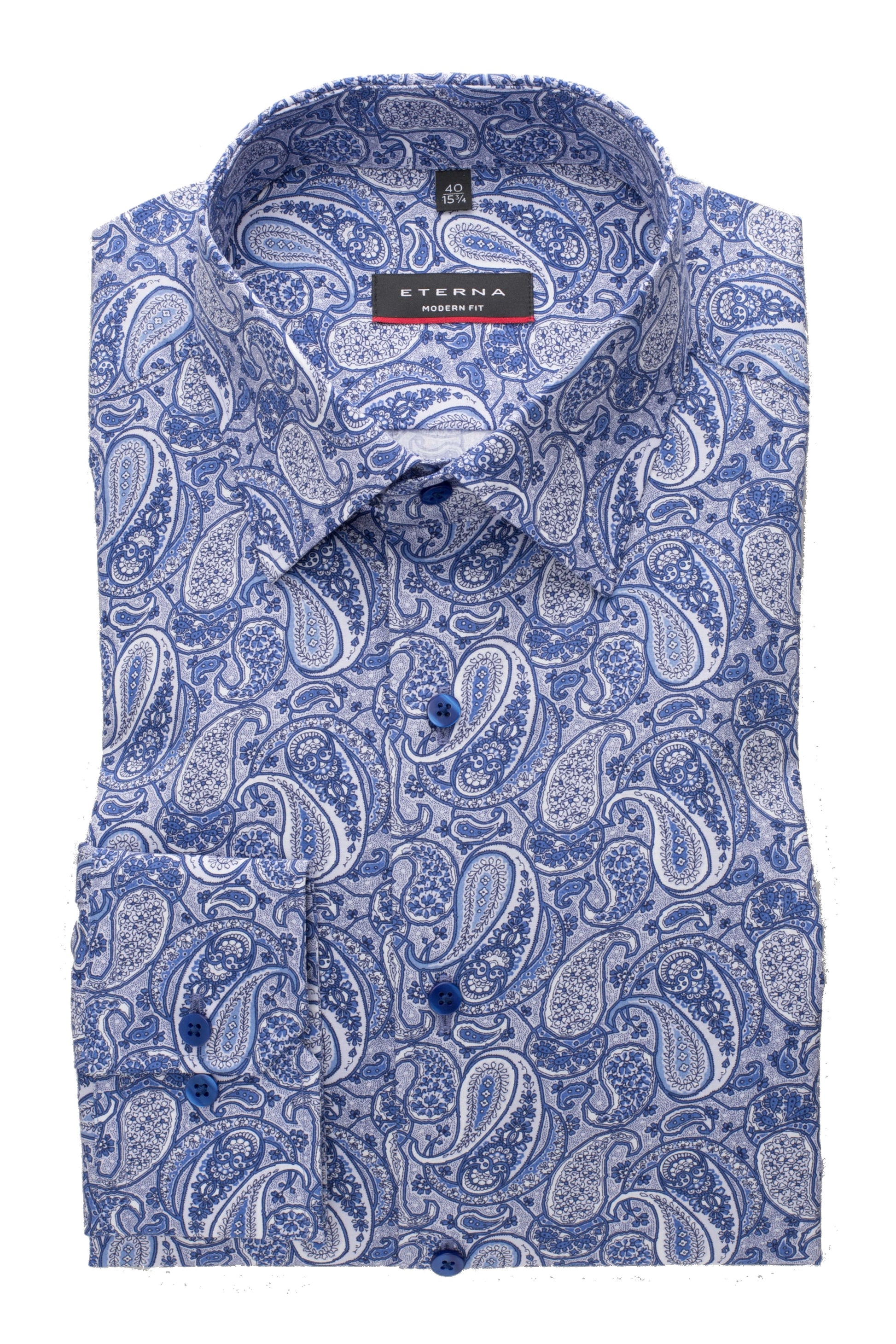 Eterna Modern Fit Poplin Paisley Skjorte – Lyseblå med Blå og Hvide Detaljer