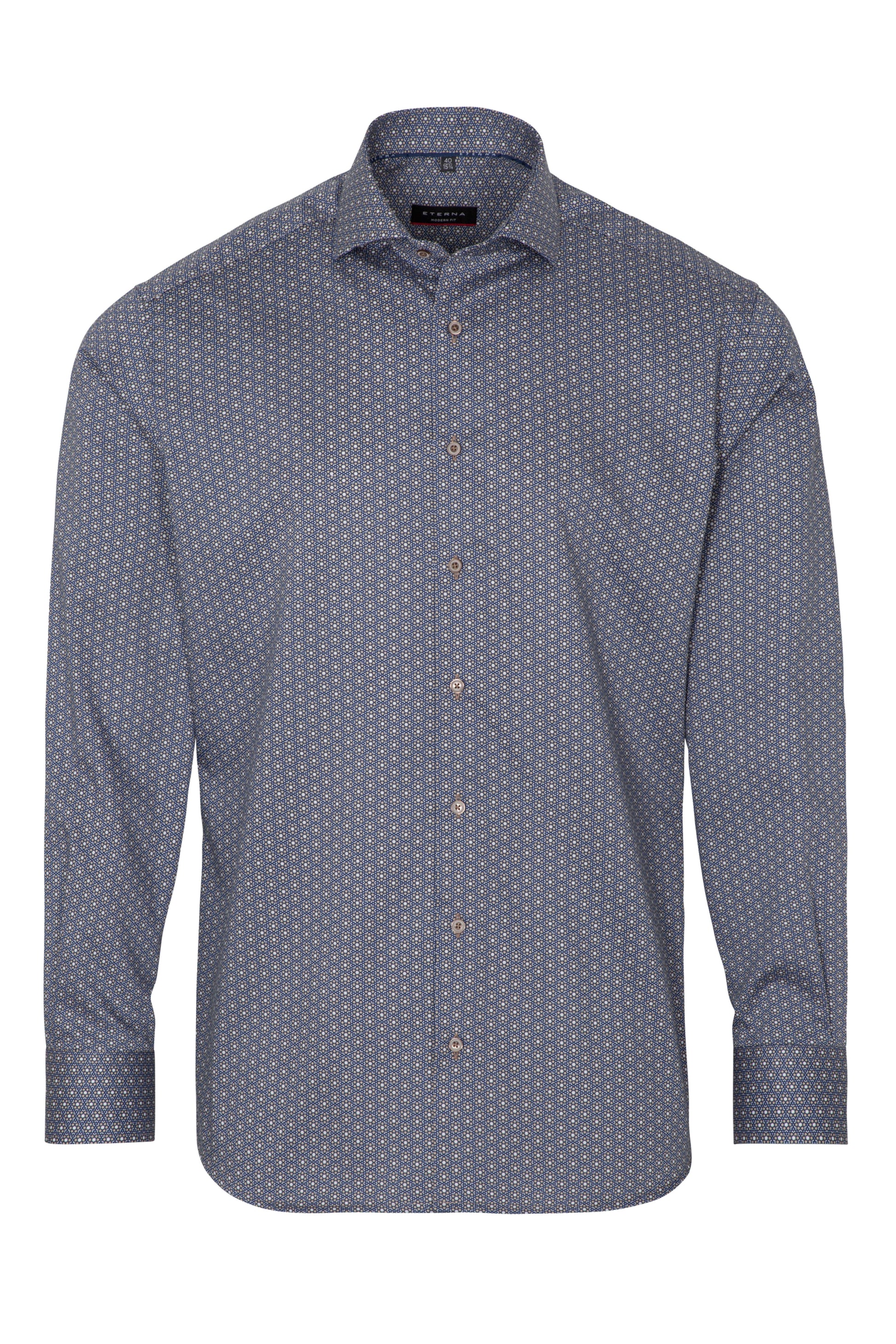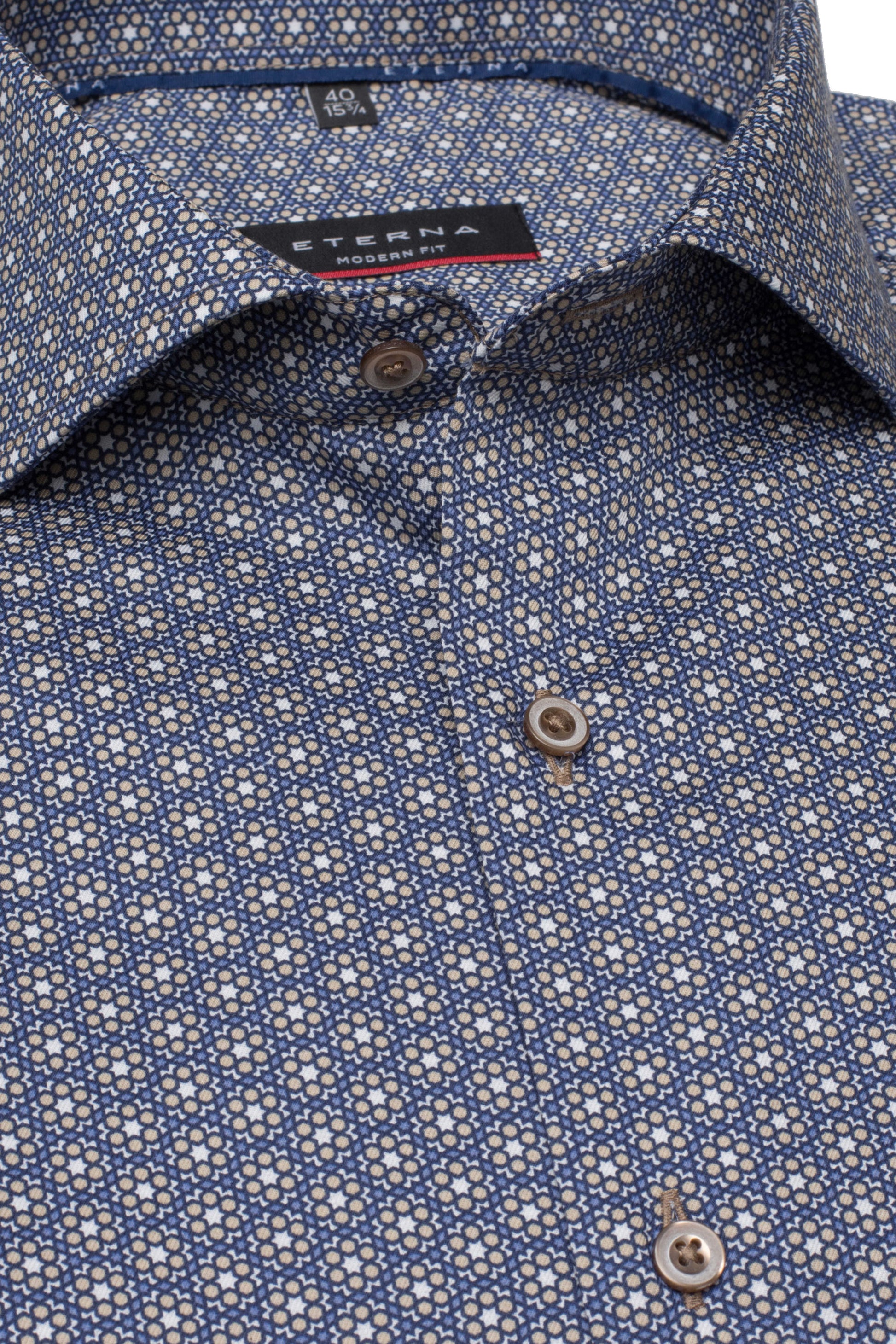 Eterna Modern Fit Printskjorte – Blå og Sandfarvet med Cut-Away Krave