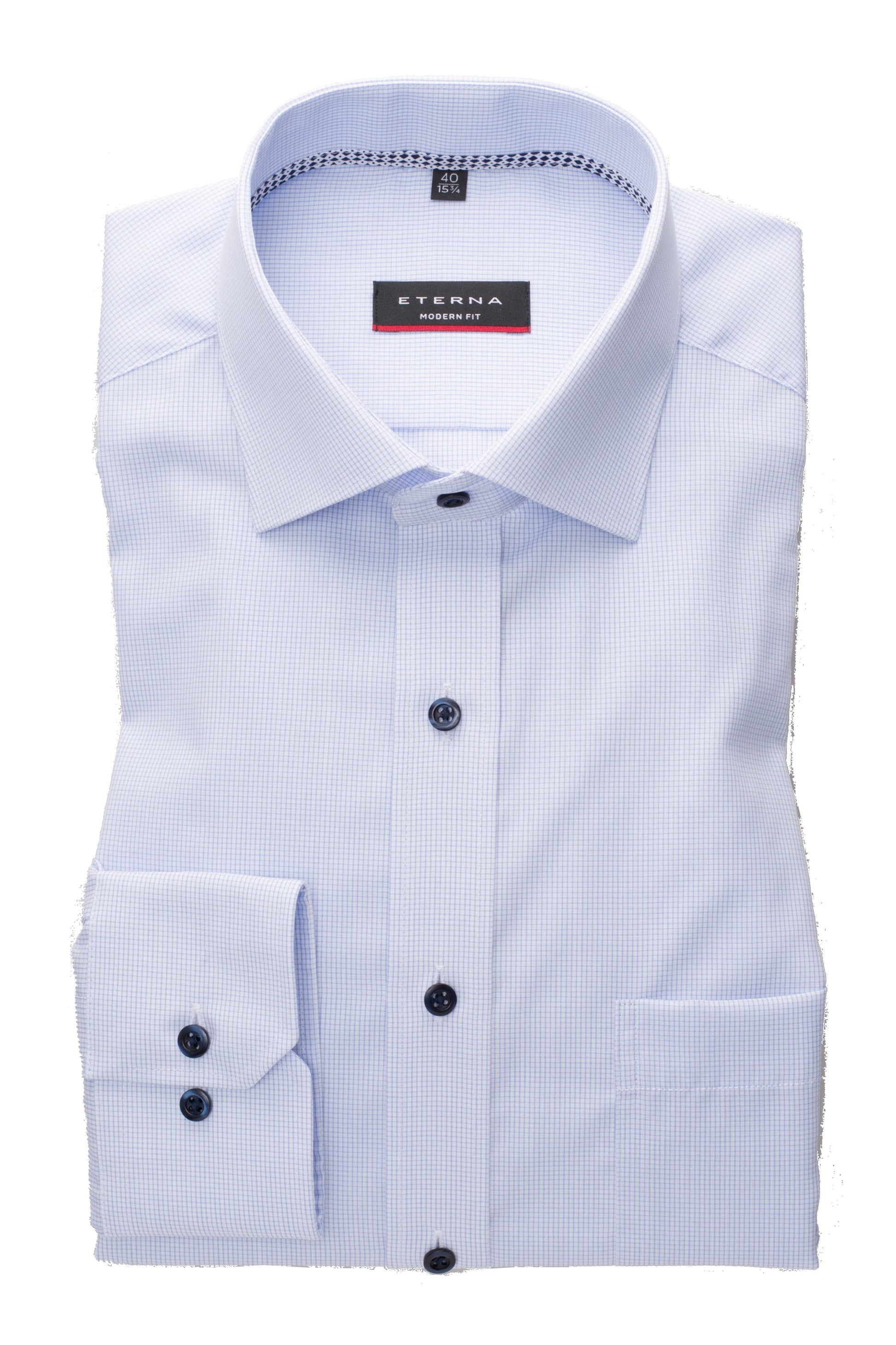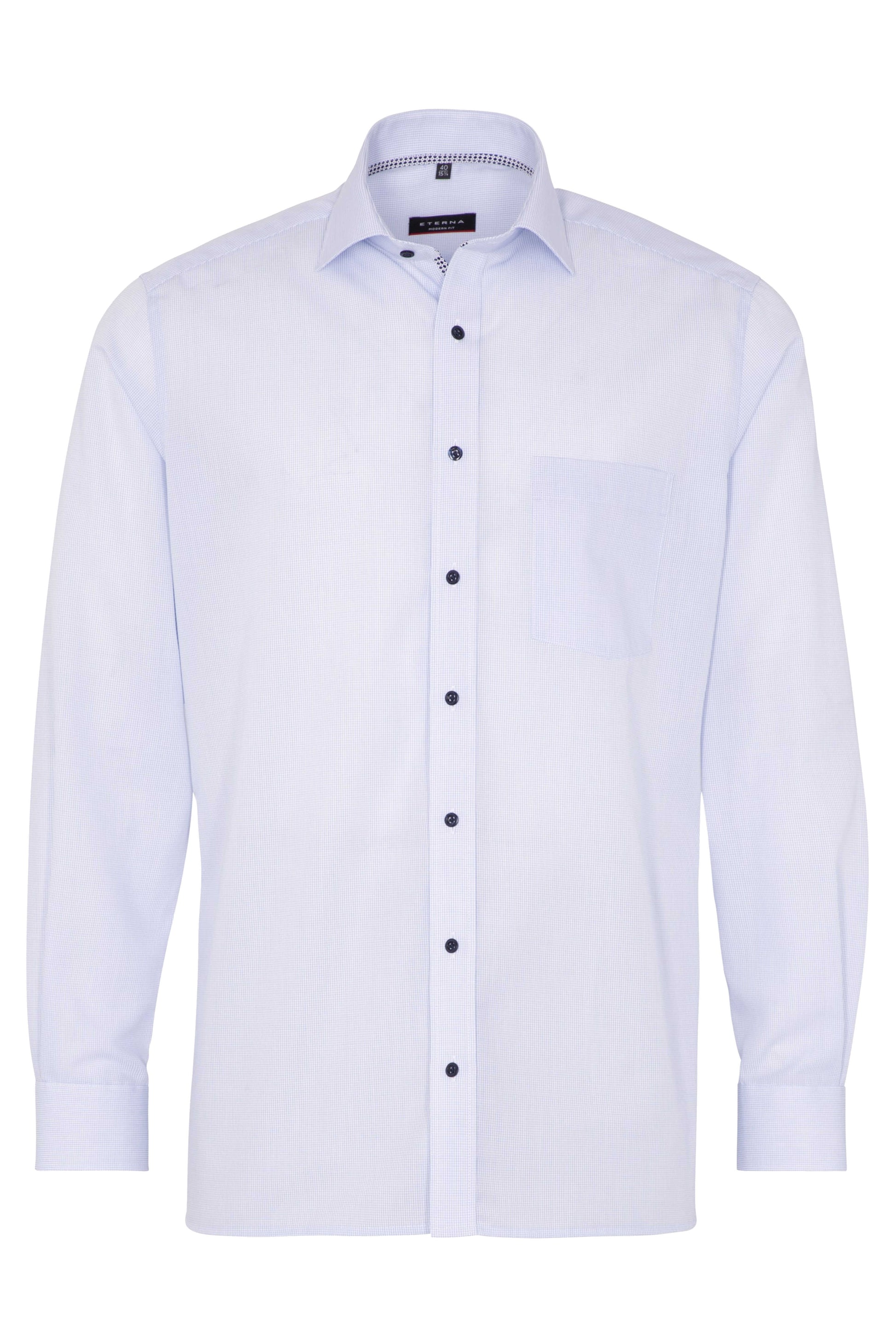 Eterna Modern Fit Skjorte – Lyseblå småternet med brystlomme