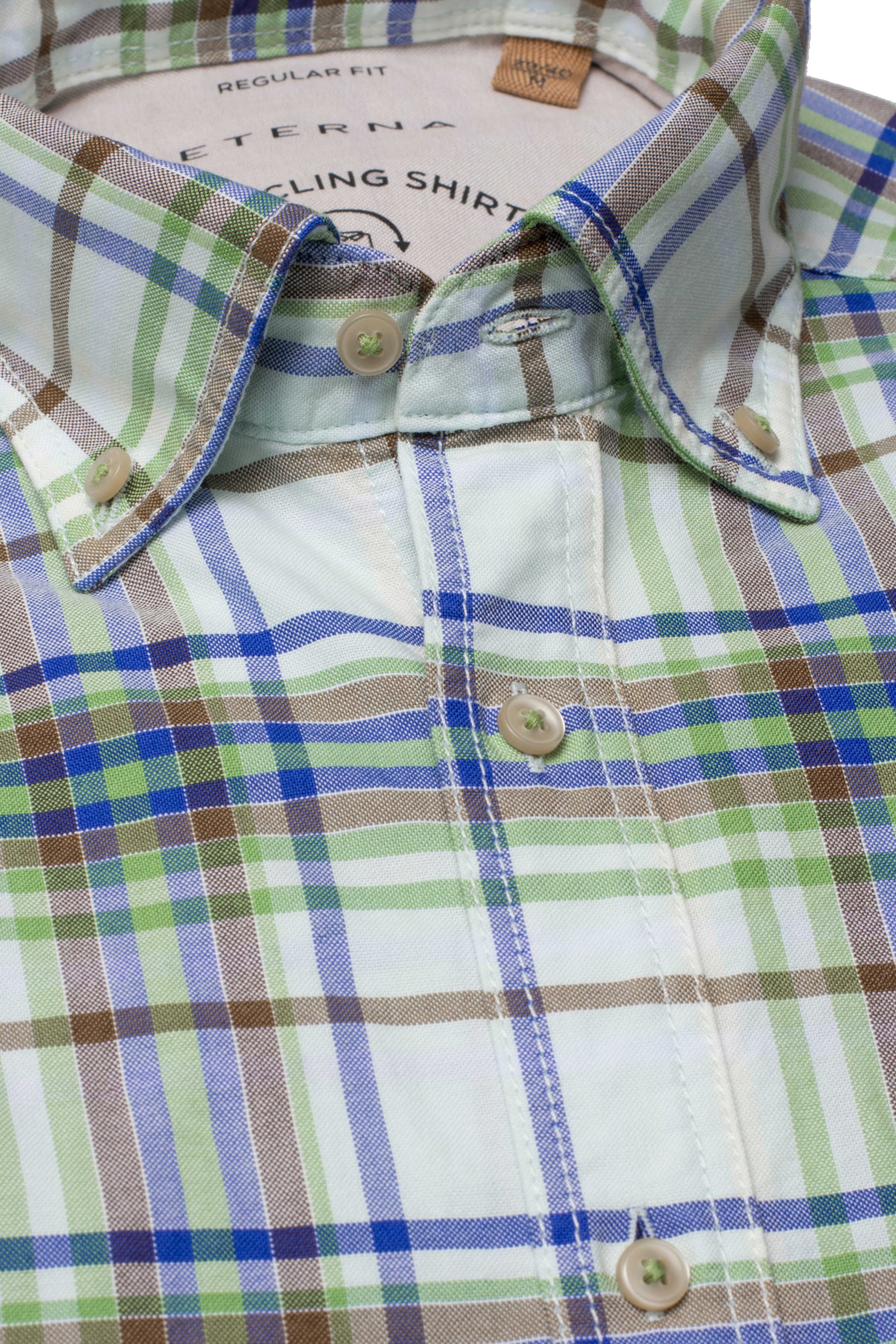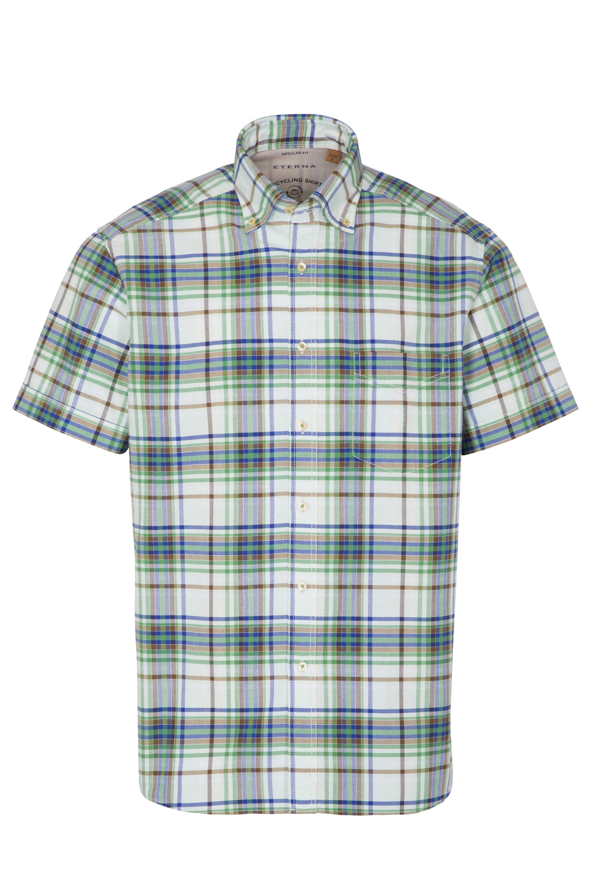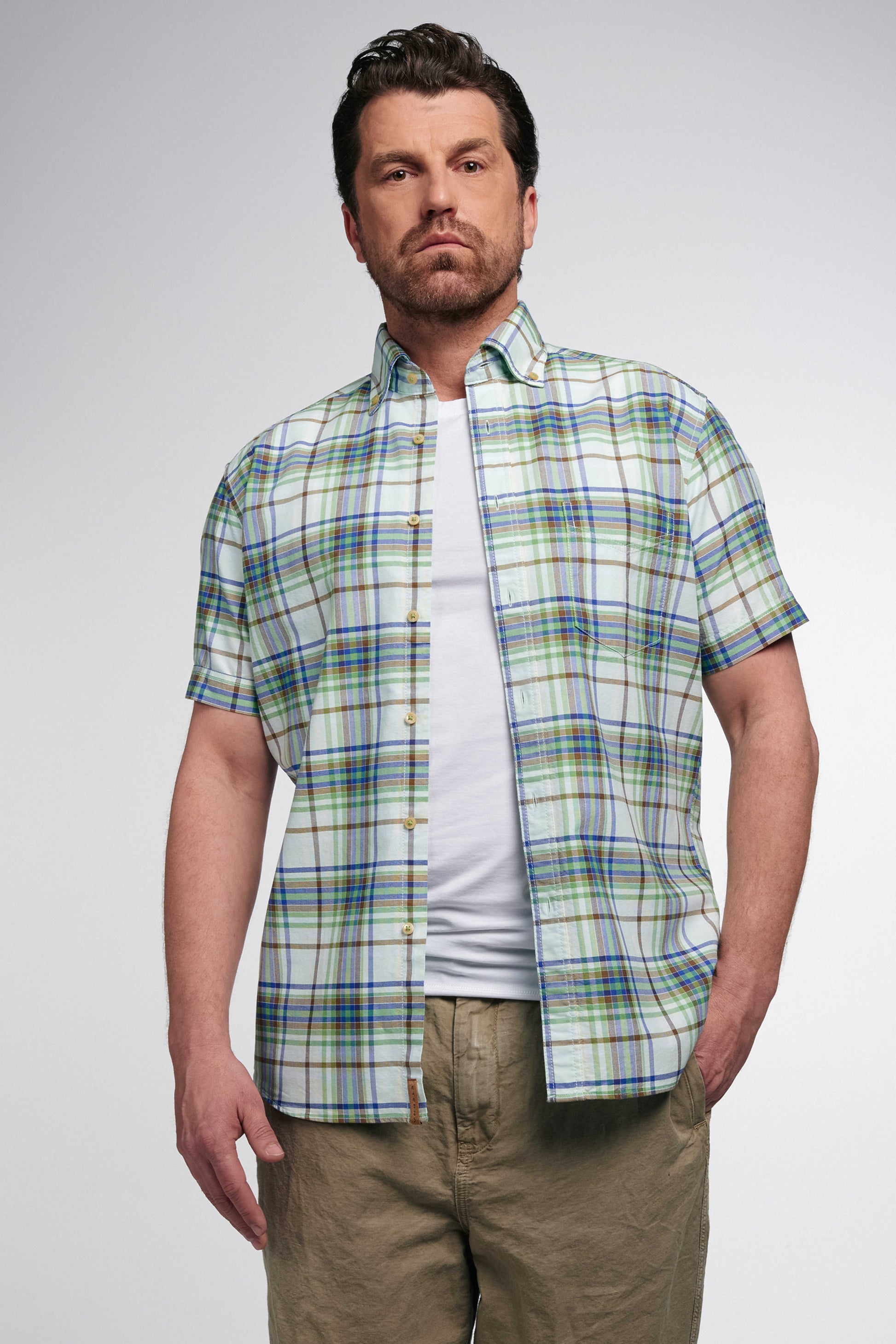 Eterna Regular Fit Upcycling Kortærmet Blå/Grøn Ternet Skjorte
