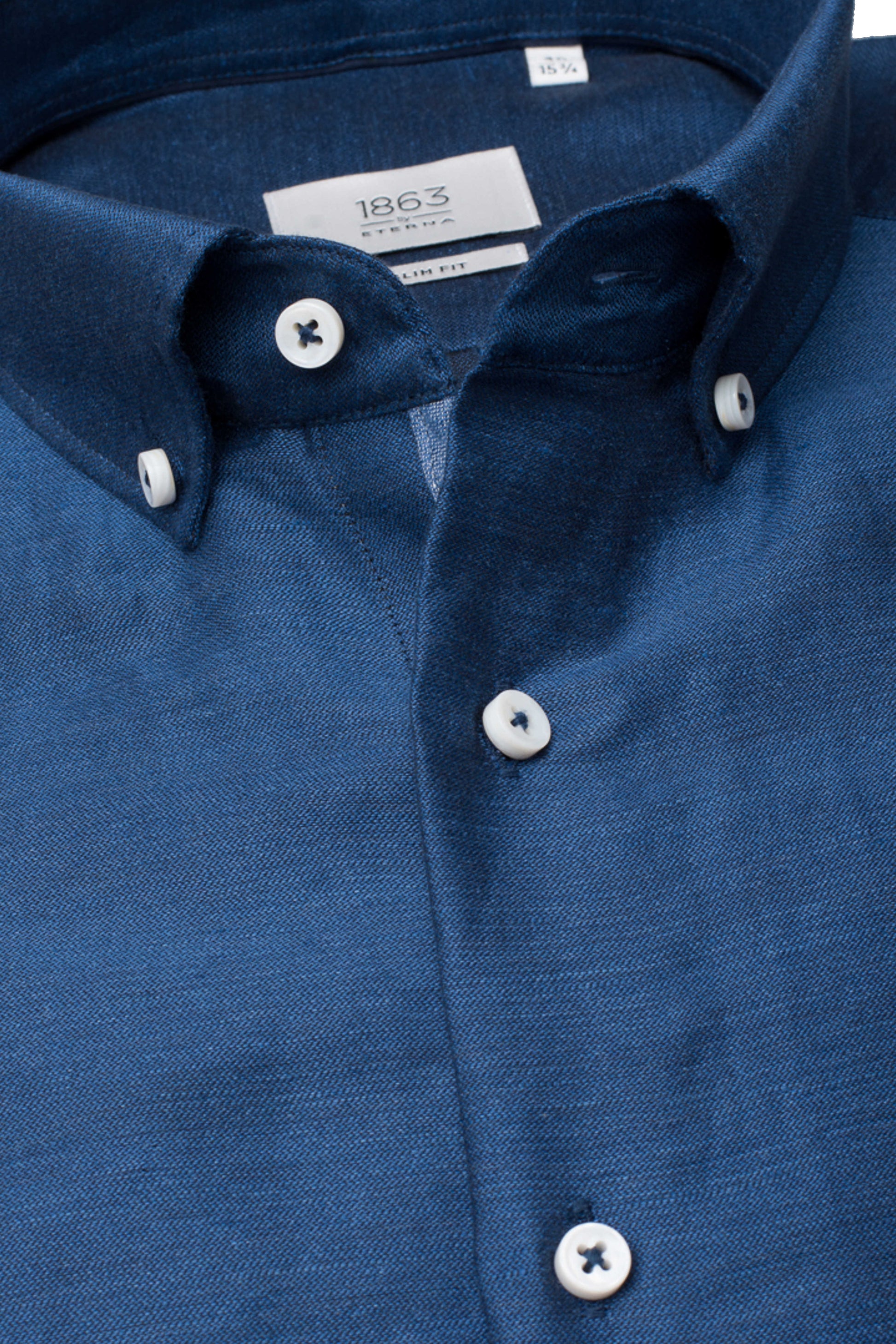 Eterna by1863 luksus hørskjorte – mørkeblå Slim Fit med italiensk TWO PLY vævning