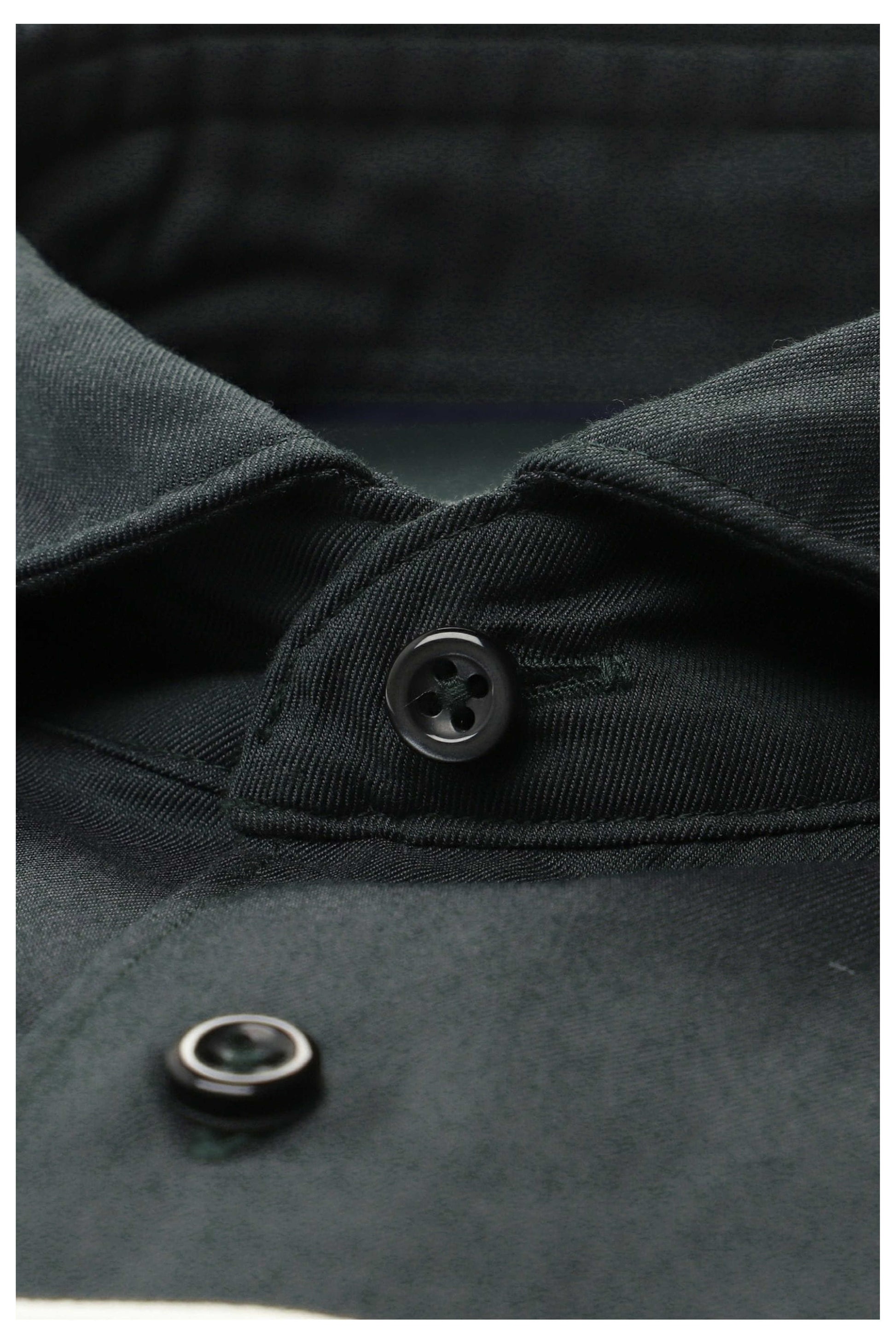 Elegant design – cut-away krave, olivengrøn farve og italienske knapper syet på stilk.