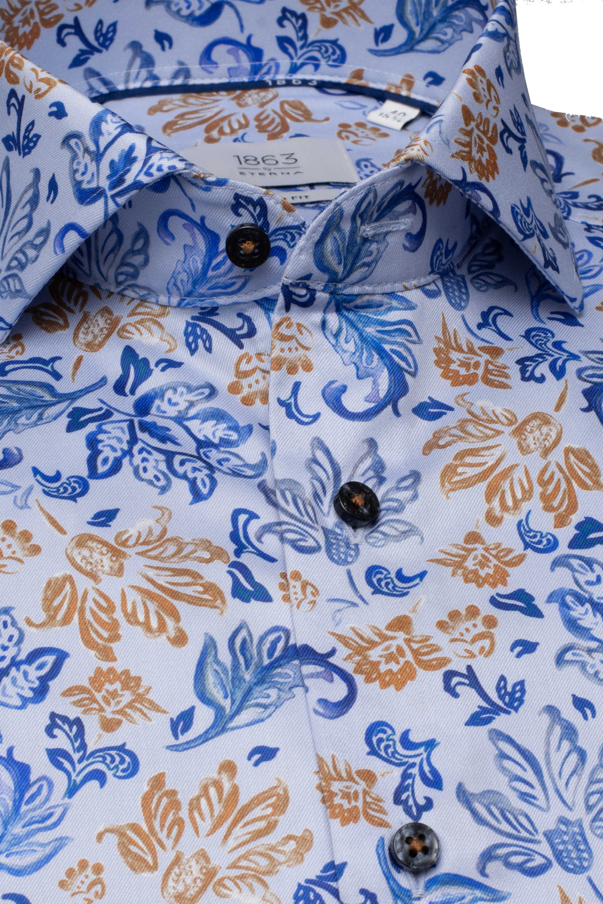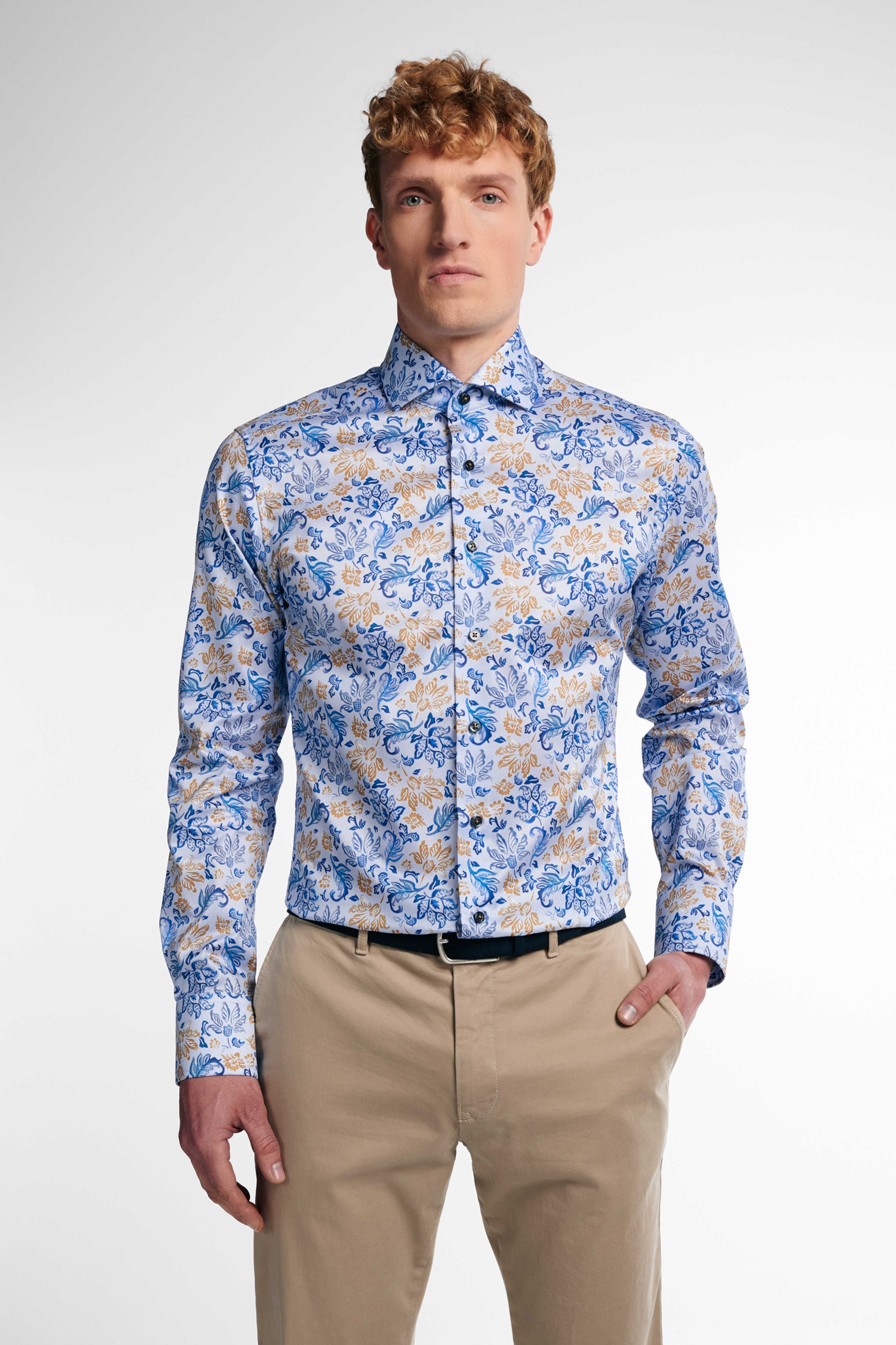 Eterna by1863 luksus premiumskjorte – blå med gyldenbrunt print
