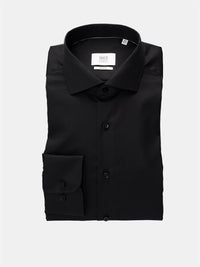 Klassisk ren sort premium skjorte med sorte knapper, let cut-away krave og uden brystlomme.