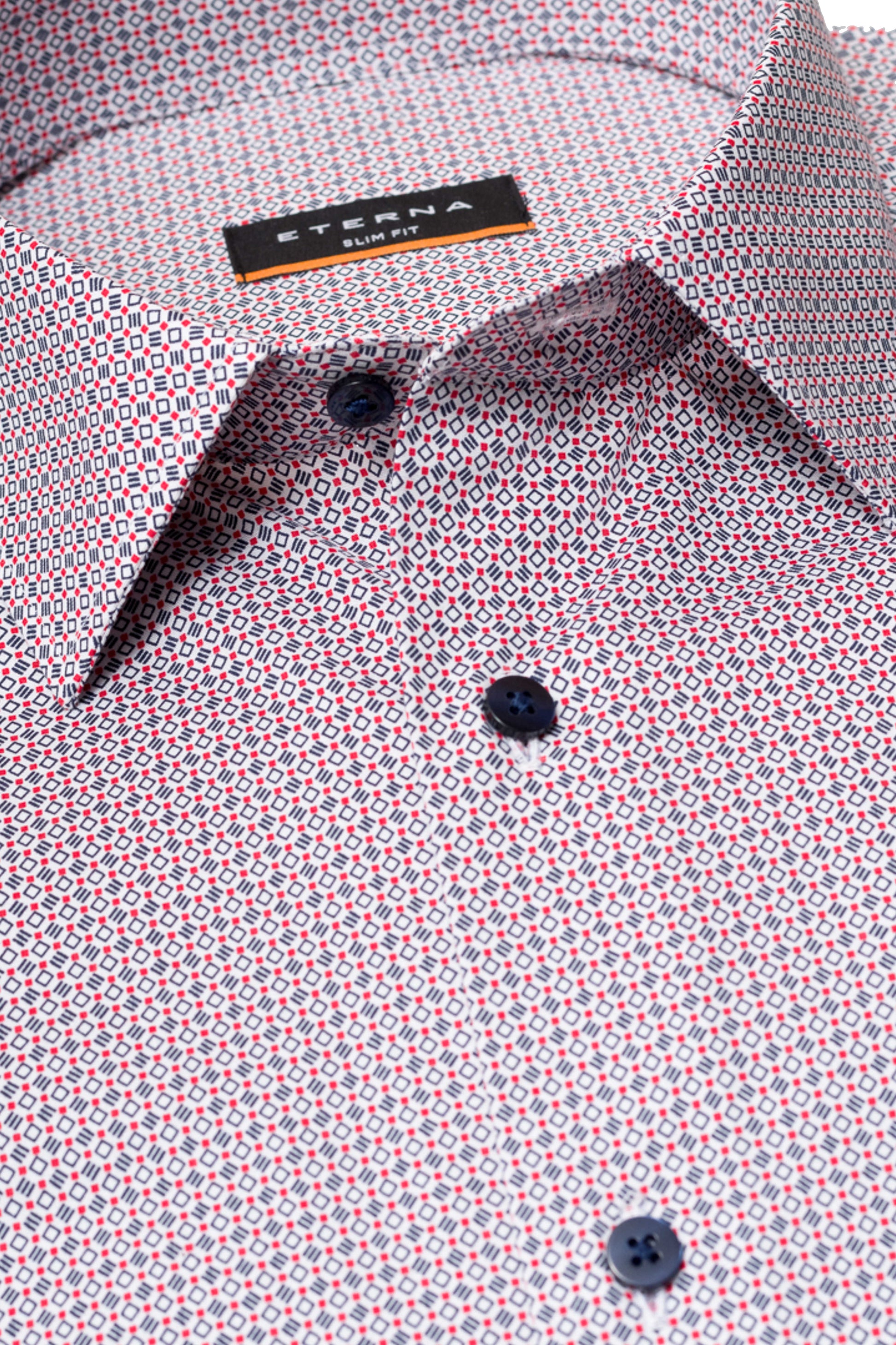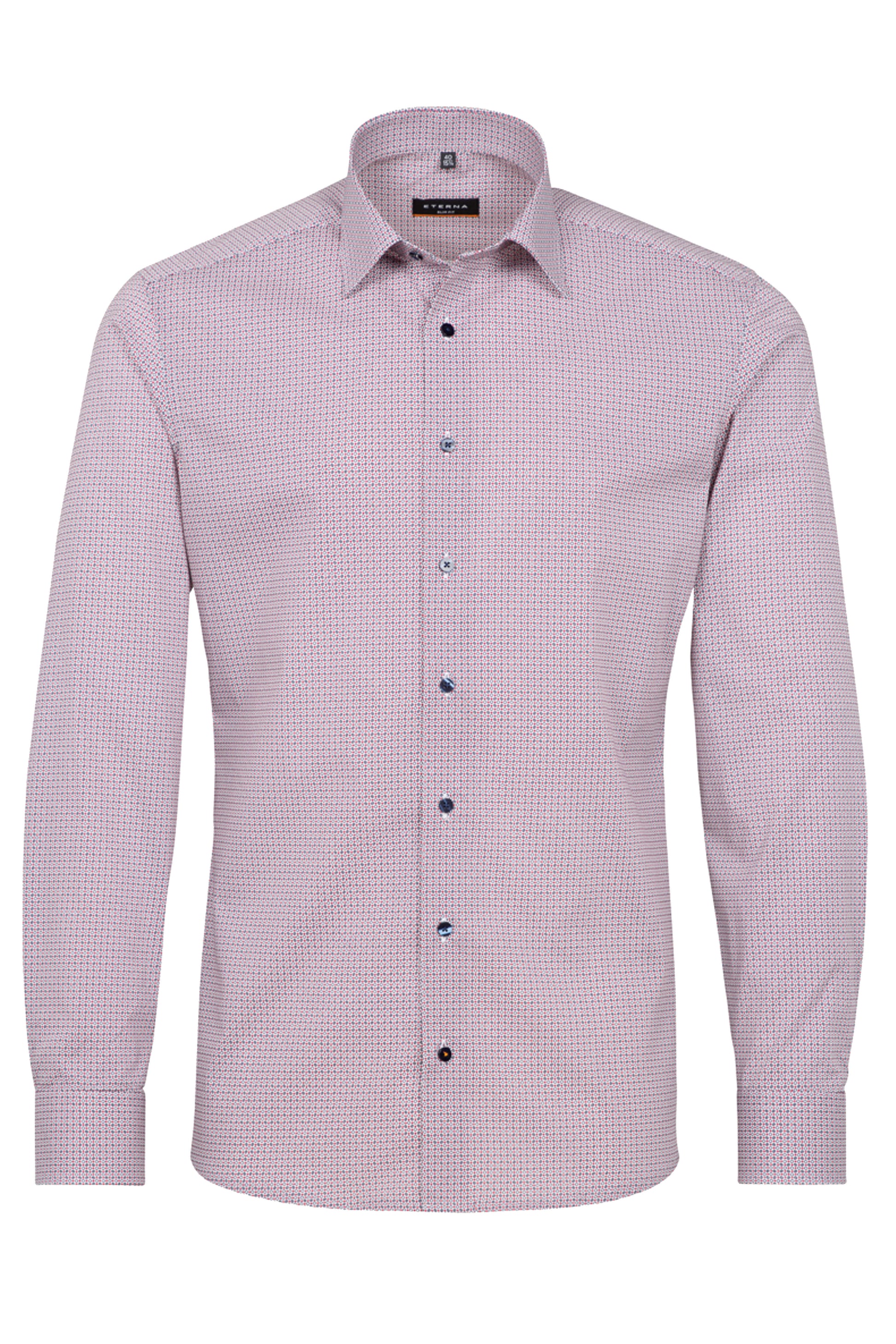 Tilfør garderoben et moderne og stilfuldt udtryk med denne Eterna skjorte i blå/rød print. Skjorten har en klassisk almindelig krave, mørkeblå knapper og et enkelt, elegant design uden brystlomme. Perfekt til både business og smart casual.