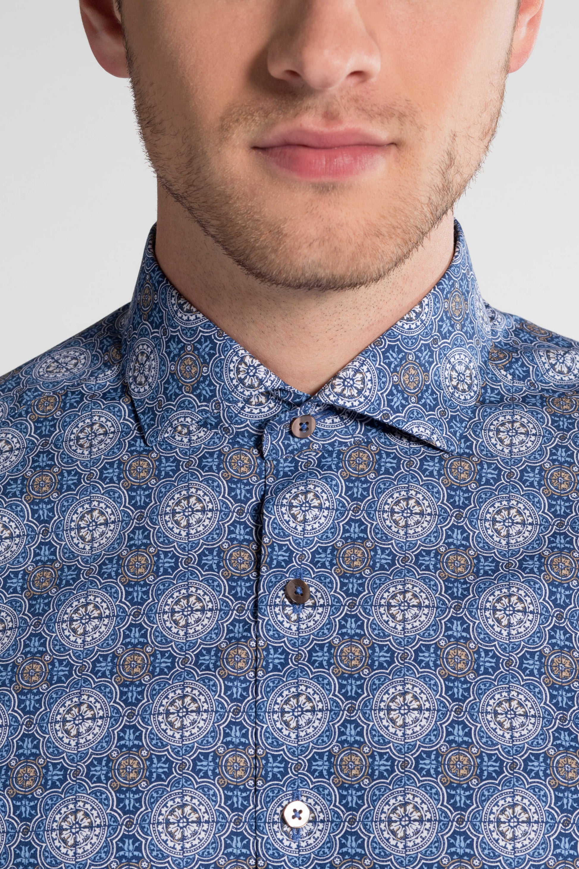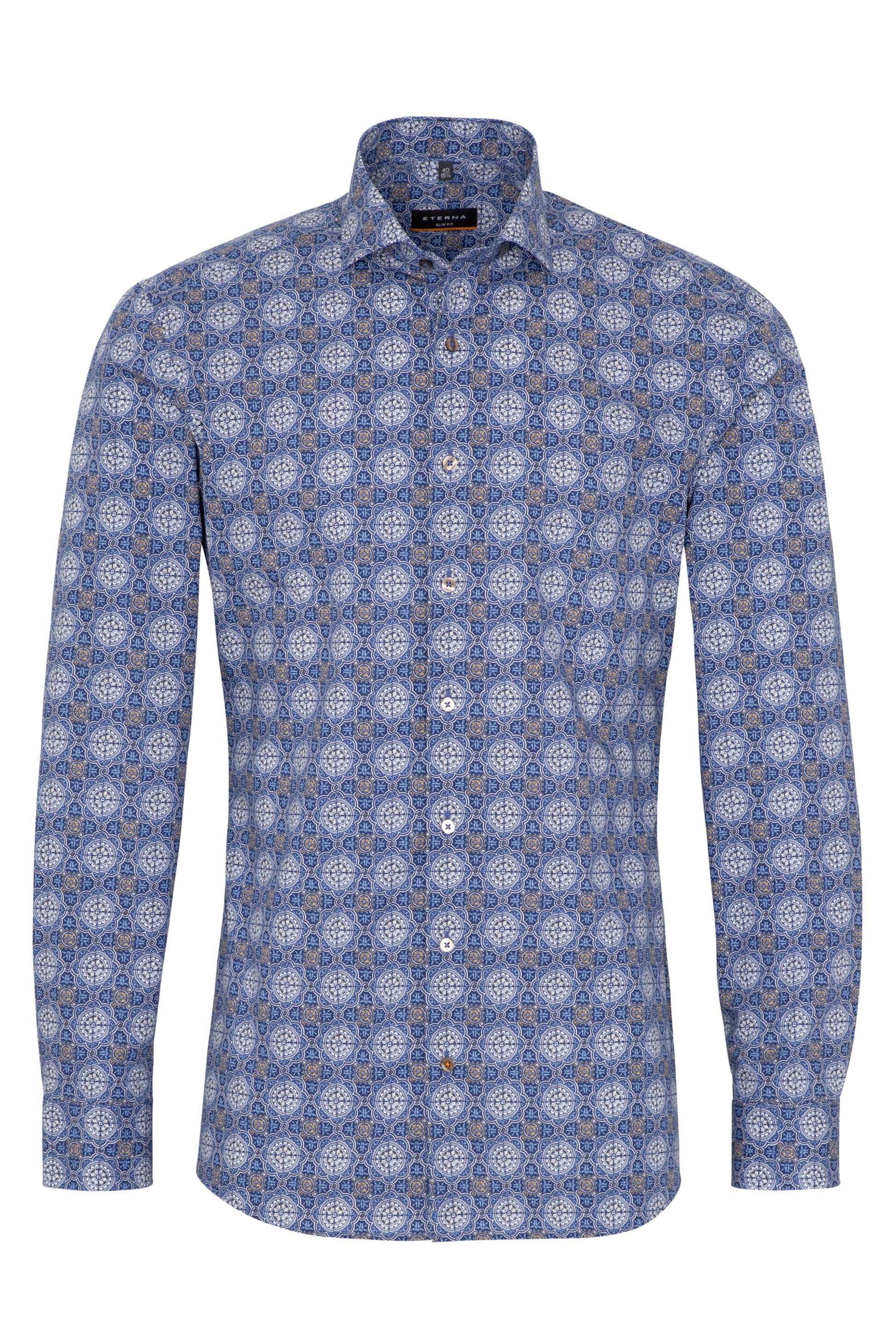 Eterna Slim Fit herreskjorte – blå paisley print uden brystlomme