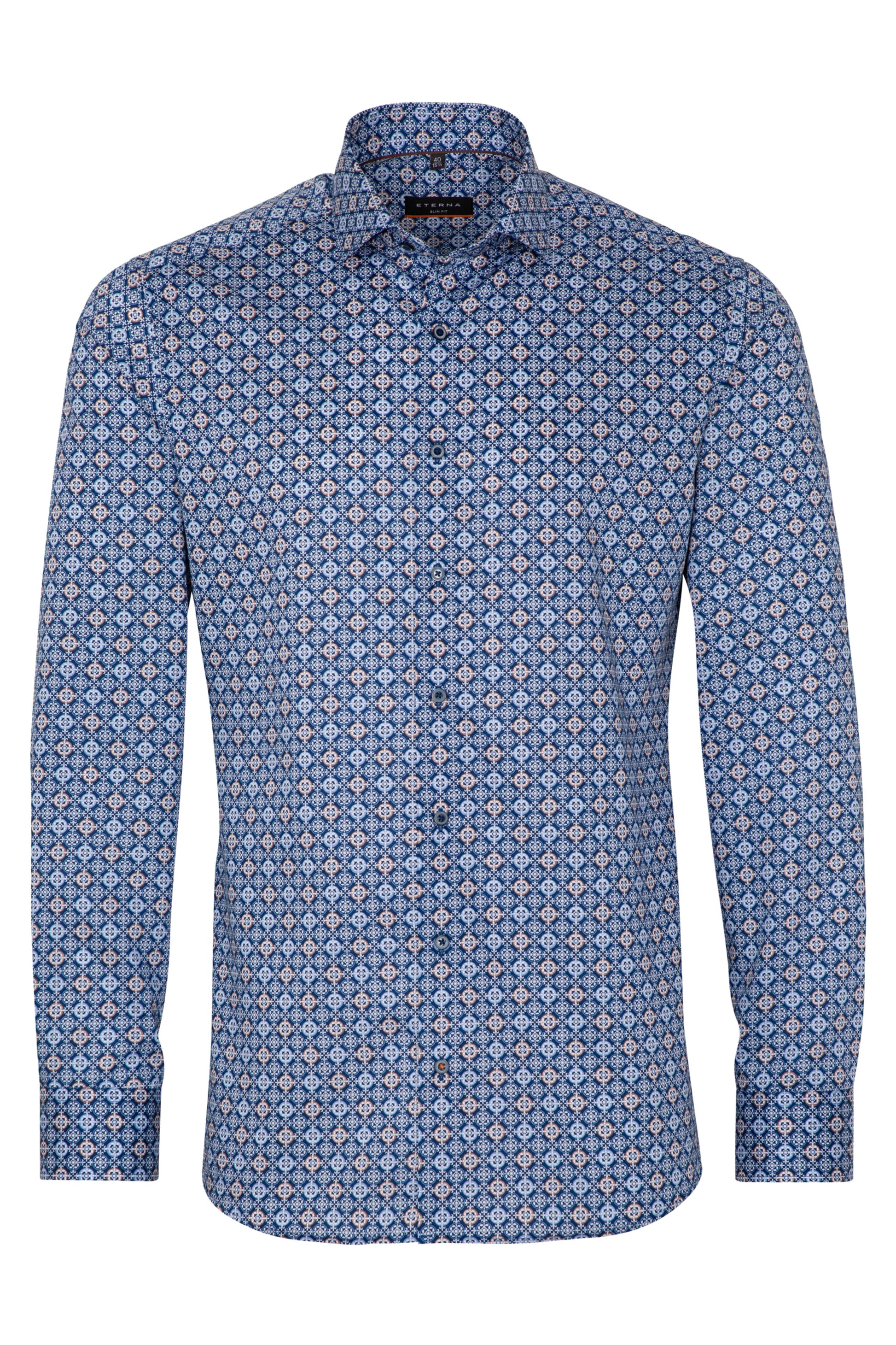 Eterna Slim Fit Twill skjorte – blå og sandfarvet print