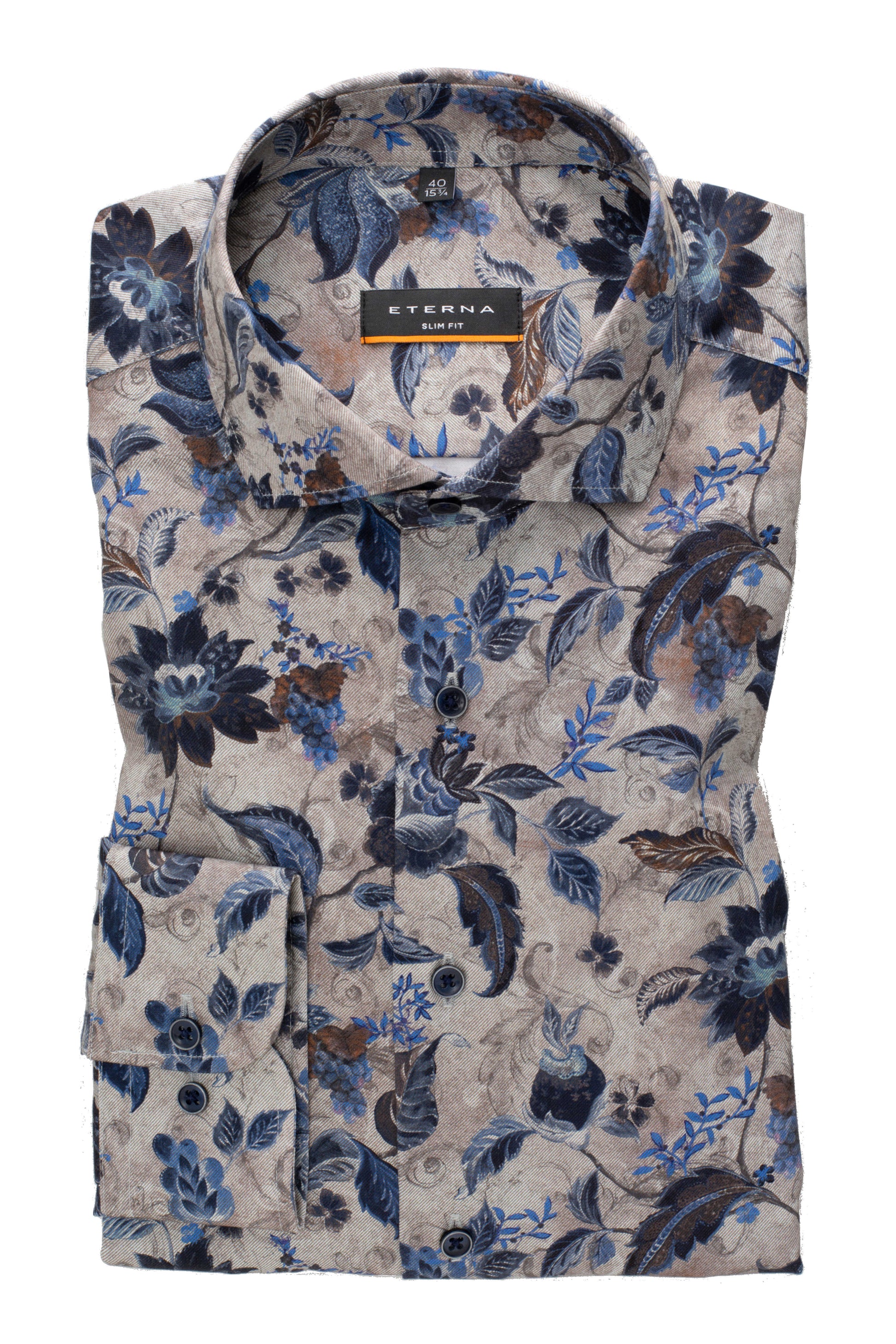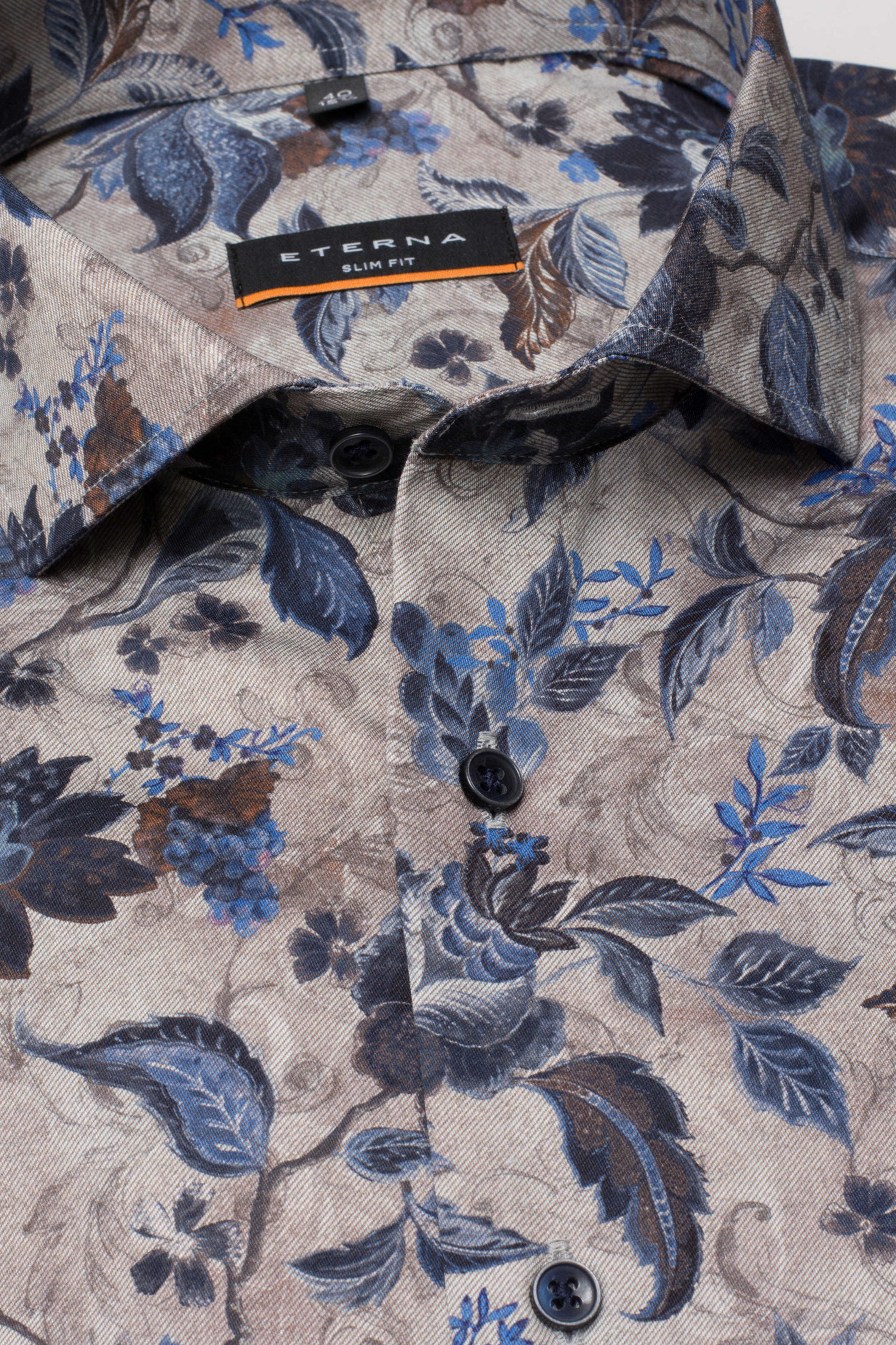 Denne brune Eterna Slim Fit skjorte med blomsterprint er det ideelle valg til dig, der ønsker en elegant og moderne skjorte, som samtidig udstråler kvalitetsbevidsthed.