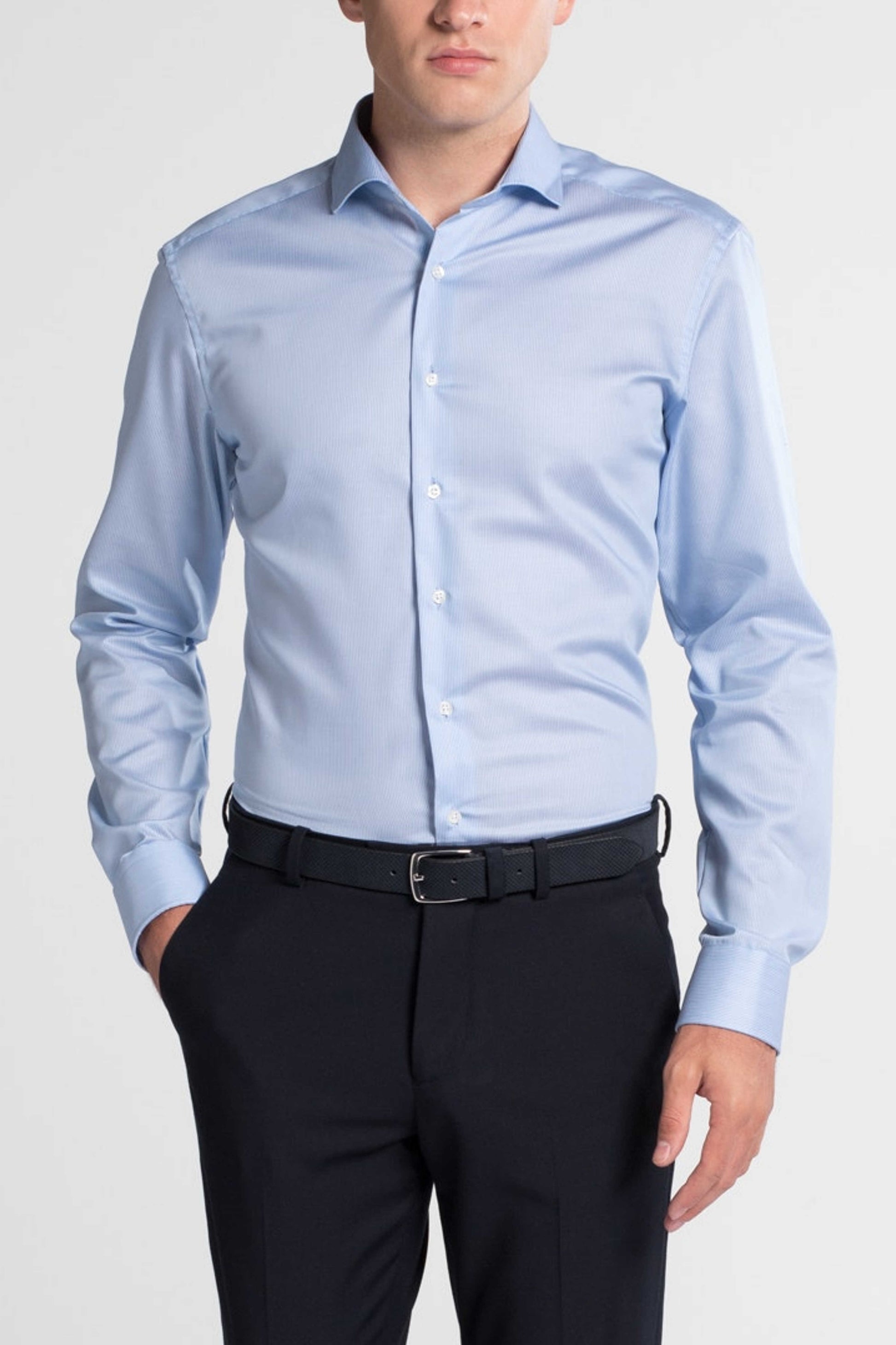 👉 Med Eterna Slim Fit lyseblå smal stribet skjorte i twill får du en alsidig og moderne herreskjorte, der både er elegant, komfortabel og nem at vedligeholde.