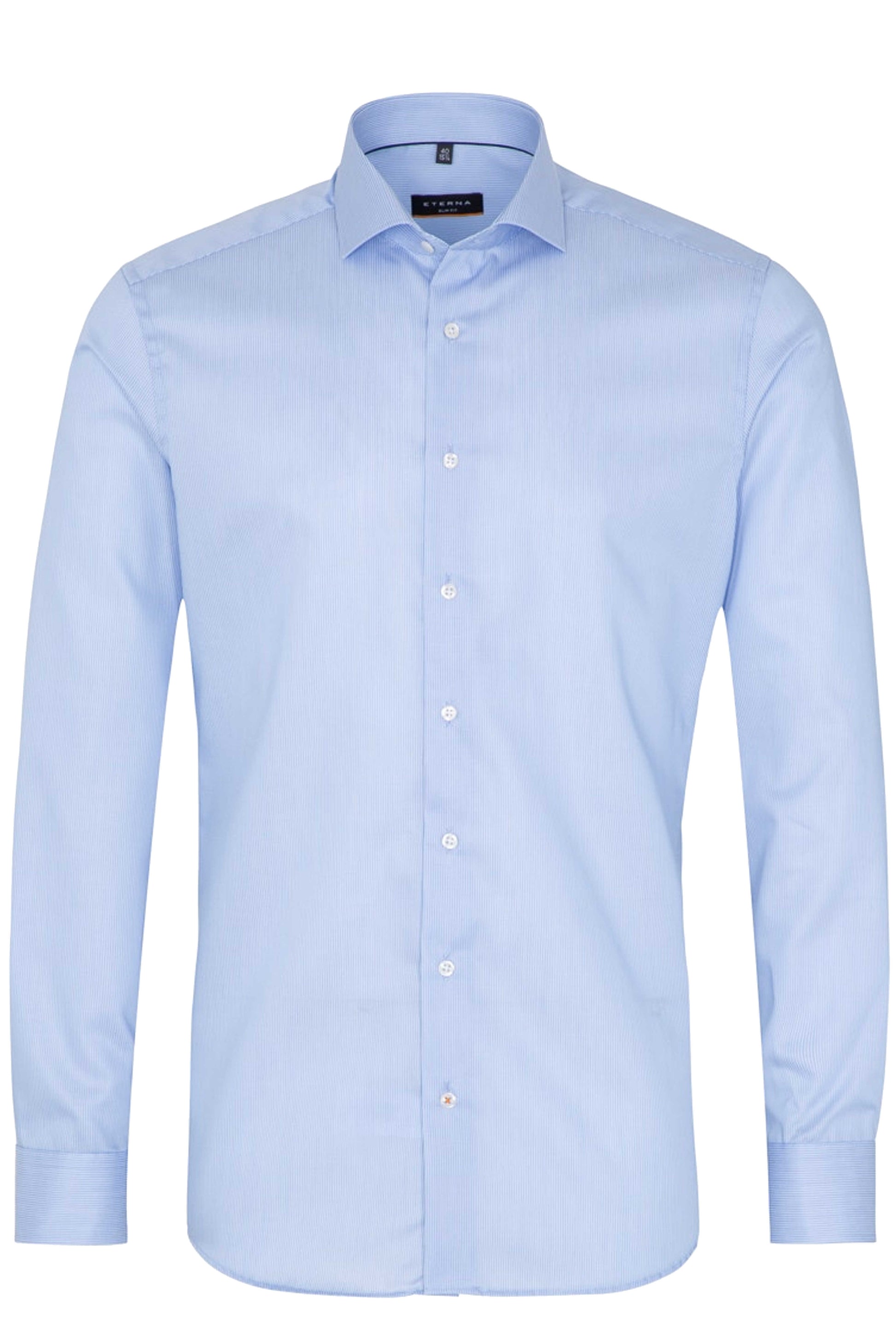 Smart og stilren lyseblå stribet herreskjorte fra Eterna, vævet i en elegant twill-kvalitet. Skjorten er designet i Slim Fit, som er beregnet til mænd med en slank kropsbygning.