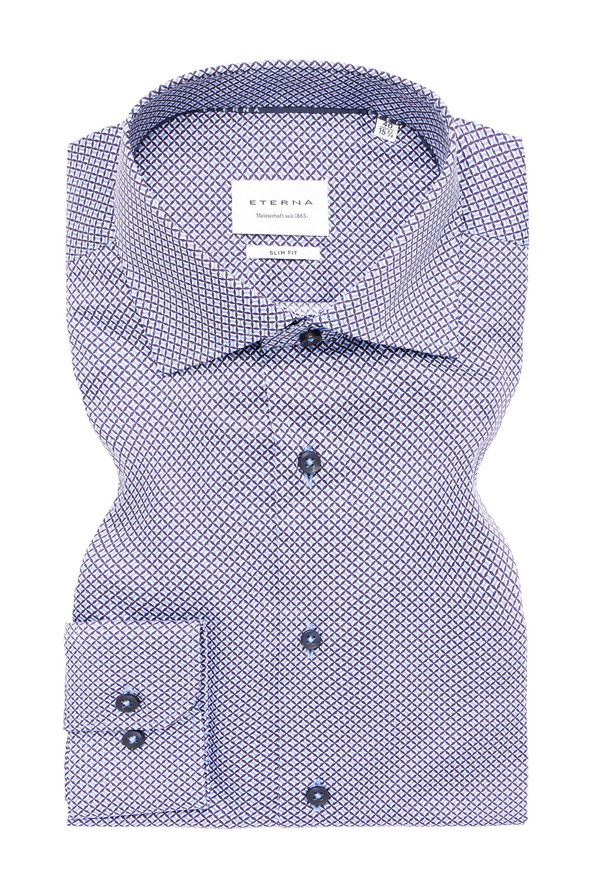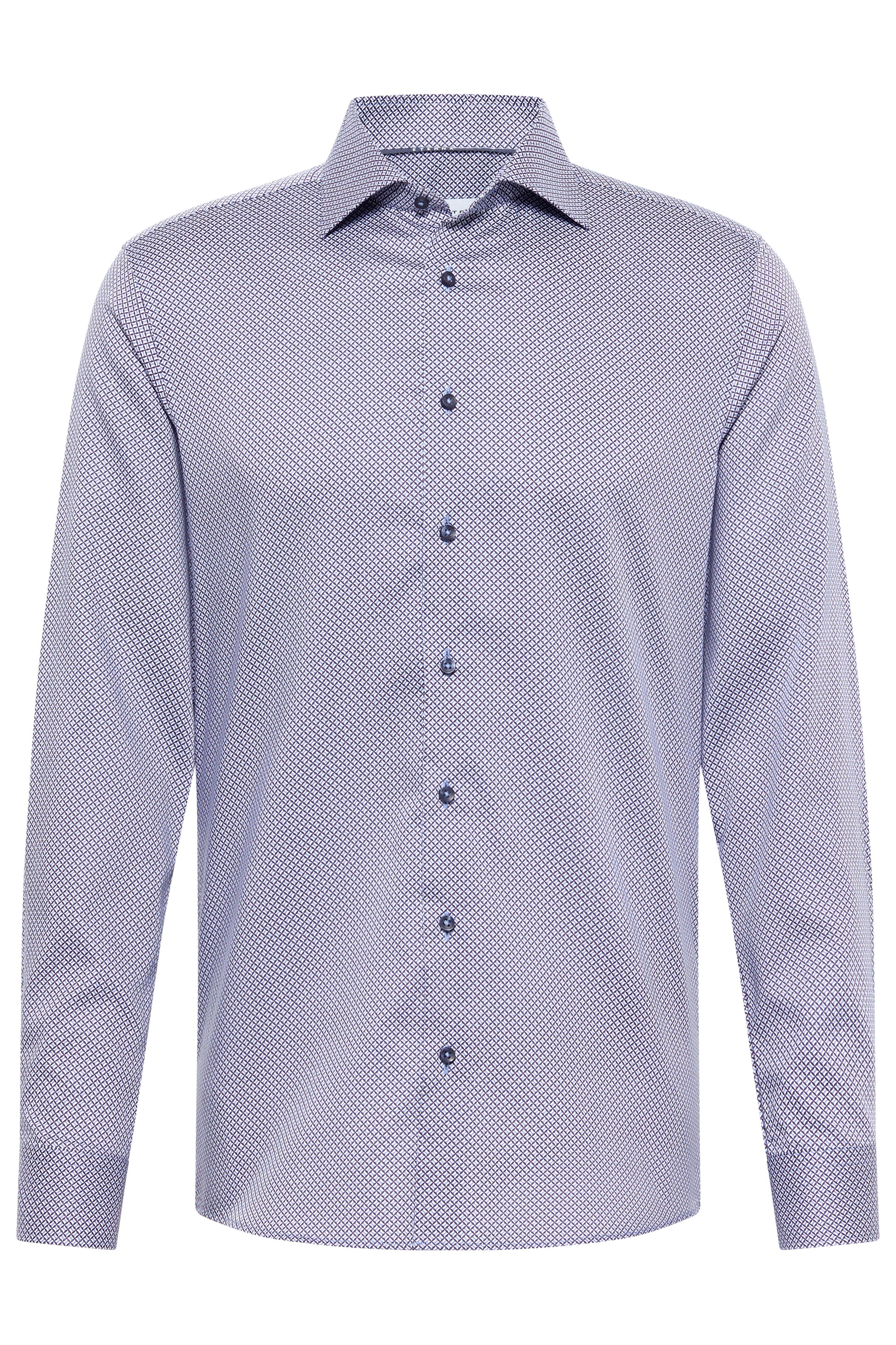 Opgrader din garderobe med denne stilfulde Eterna Slim Fit print skjorte. Denne strygefri twill print skjorte med blåt print er fremstillet af 100% bomuld, hvilket sikrer optimal komfort hele dagen. Afrundet og normal længde, kan bæres afslappet over bukserne.