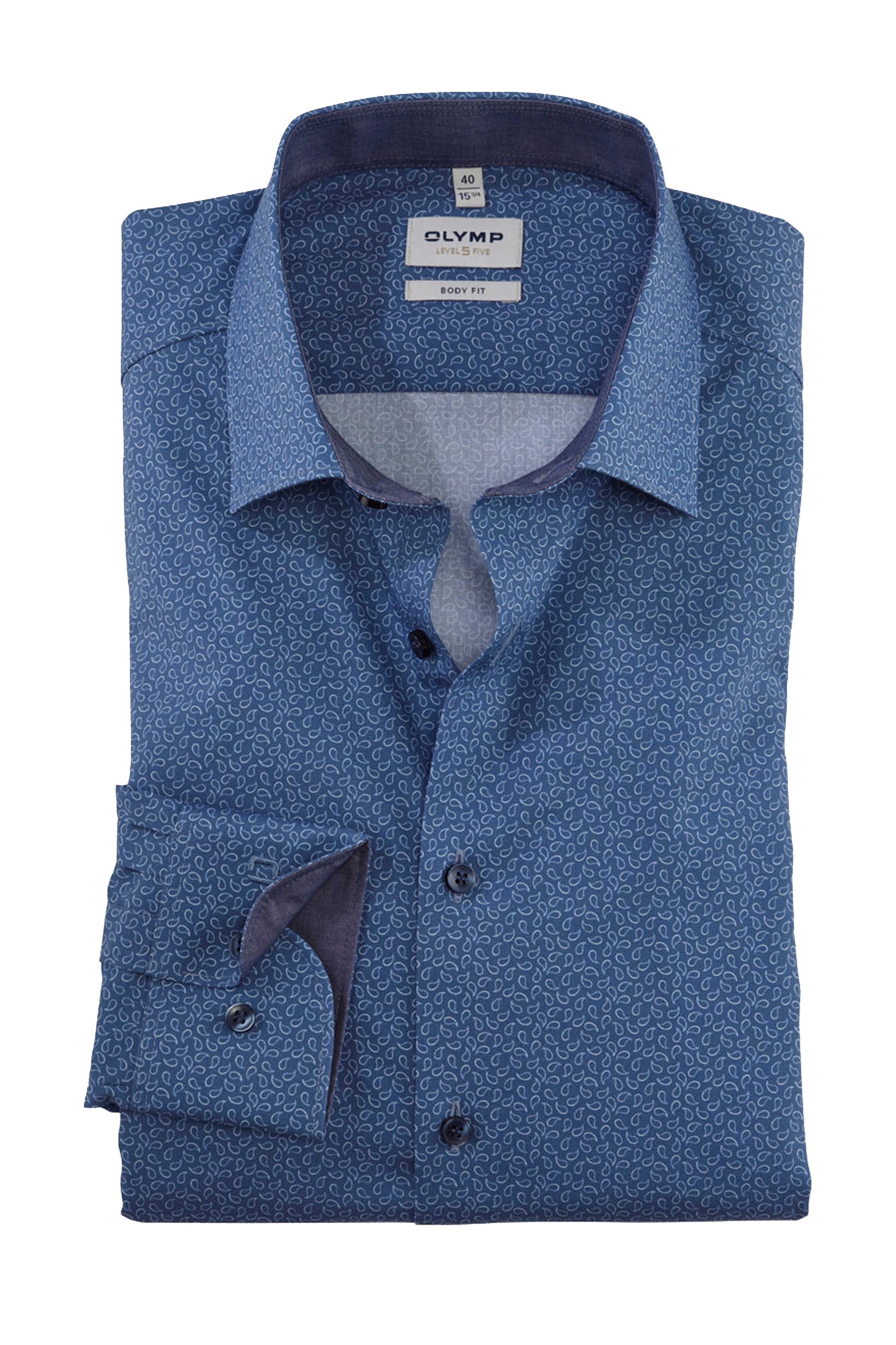 Oplev stil og komfort med denne smarte print skjorte fra det anerkendte tyske mærke Olymp. Skjorten er designet med en klassisk New York Kent krave og matchende mørke italienske knapper, hvilket giver et sofistikeret udtryk. Uden brystlomme for et rent og moderne look. Skjorten har et slankt "body fit/slim fit" snit, der sikrer en elegant og moderne pasform.