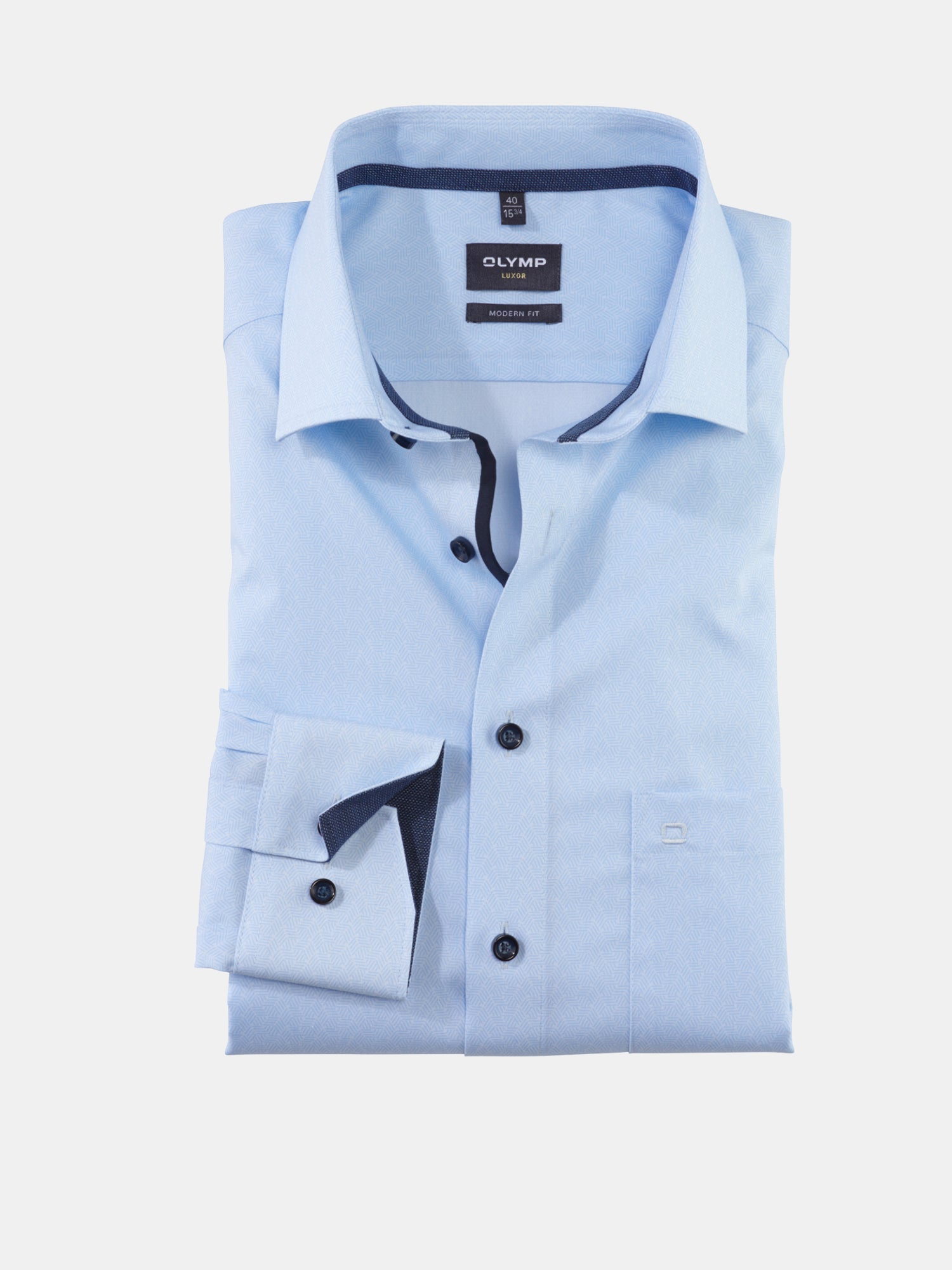 Med mørkeblå knapper og Global Kent krave samt med brystlomme. Diskret kontrastbånd i krave og stolpelukning samt i manchet.